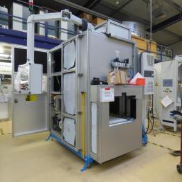 Fabrikat: RICHTER, kundenspezifische Felgen-Nadelmarkierstation & DMC-Lasermarkierer für Alu-Felgen 14"-24", Taktzeit < 20sec., Maße: ca. 2.500 x 2.000 x 2.500mm, teilweise demontiert, nicht funktionsfähig