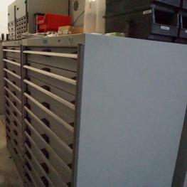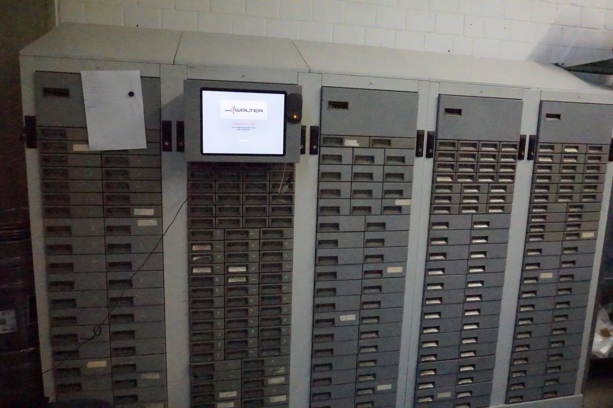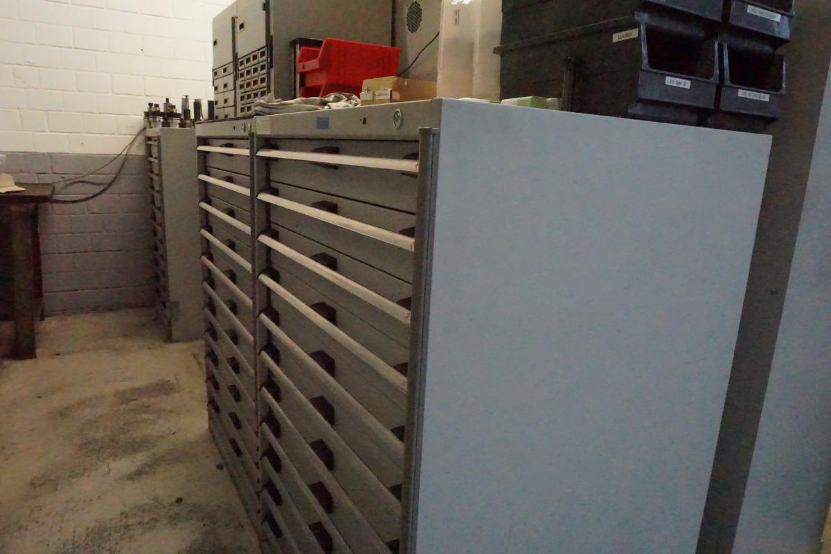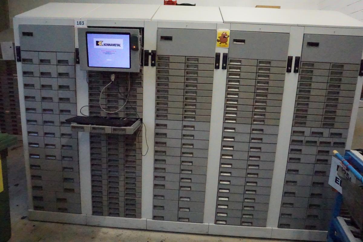 Fabrikat: KENNAMETAL, Typ: Toolboss, ca. 3 lfm., elektron. Freigabesteuerung, Touchpad, 15-teilig, Fachbodenregal, META, ca. 2.000 x 500 x 1.900 mm, 10 Böden, 1 Werktisch, 3 Teleskopschubladenschränke, Werkzeugschranksystem, Fabr. KENNAMETAL, ca. 4 lfm., elektr. Freigabesteuerung, Touchpad, 7-teilig, Werktisch, Doppelschleifbock, FORMAT, CID200, ohne Werkzeuge