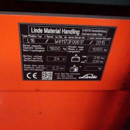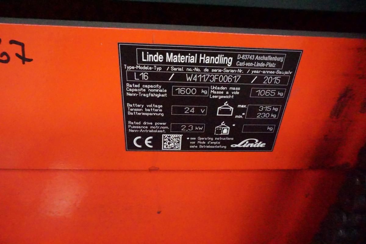 Fabrikat: LINDE, Typ: L16, Baujahr: 2015, Ser.-Nr. 00617, Tragfähigkeit 1.600 kg, 24 V,