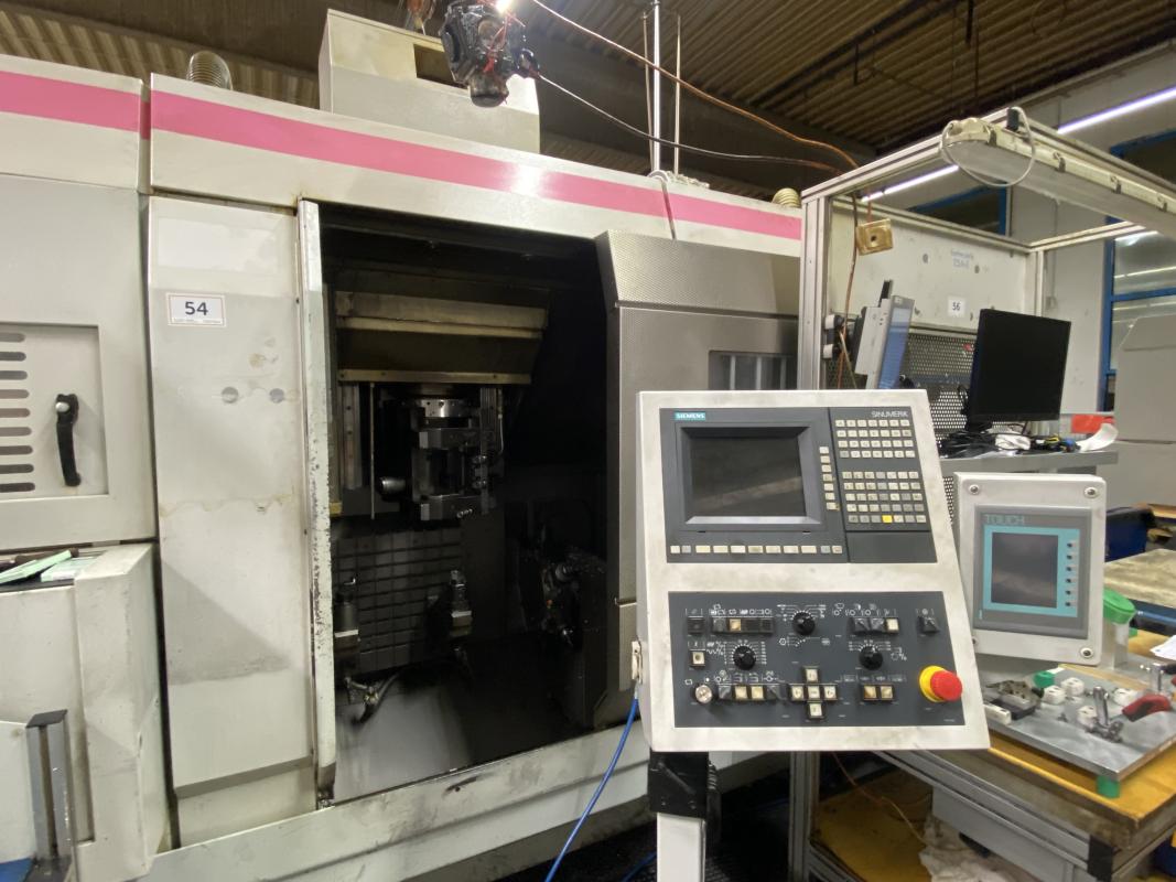 Fabrikat: INDEX, Typ: V 300, Baujahr: 1999, Ma.-Nr.: 090051, Steuerung, Fabr. Siemens, Typ 840 C, Verfahrwege X/Z 1.500 x 340 mm, Dreh-Ø 420 mm, Futter-Ø 315 mm, Umlauf-Ø max. 420 mm, Spindeldrehzahl max. 4.200 U/min, Spindel-Ø 140 mm, 2x 10-facher Werkzeugrevolver, 2x 10 angetr. Werkzeuge, Späneförderer, Fabr. Knoll, Kühlanlage, Fabr. Knoll