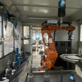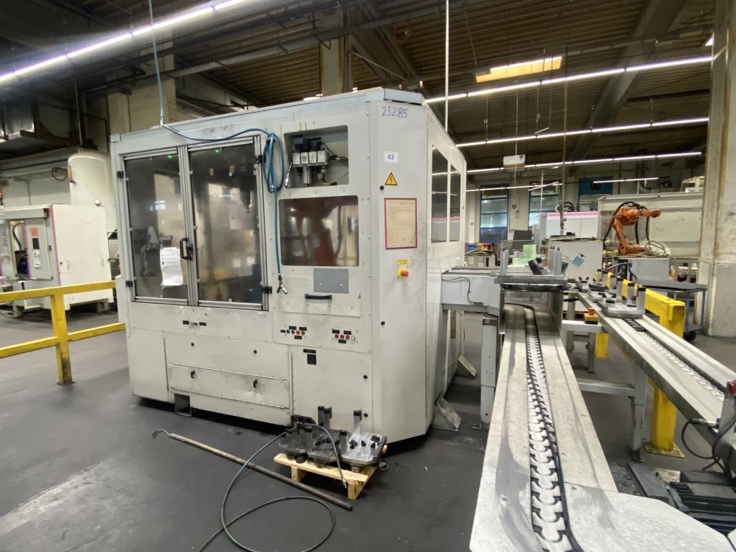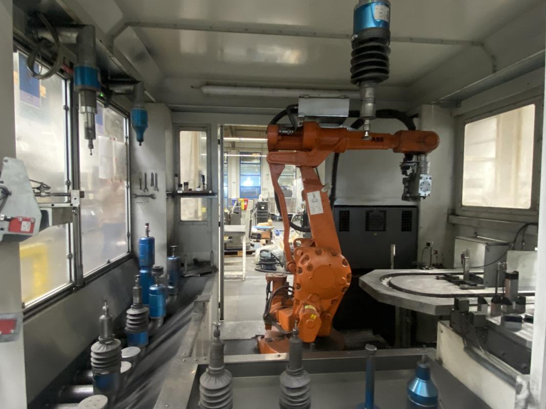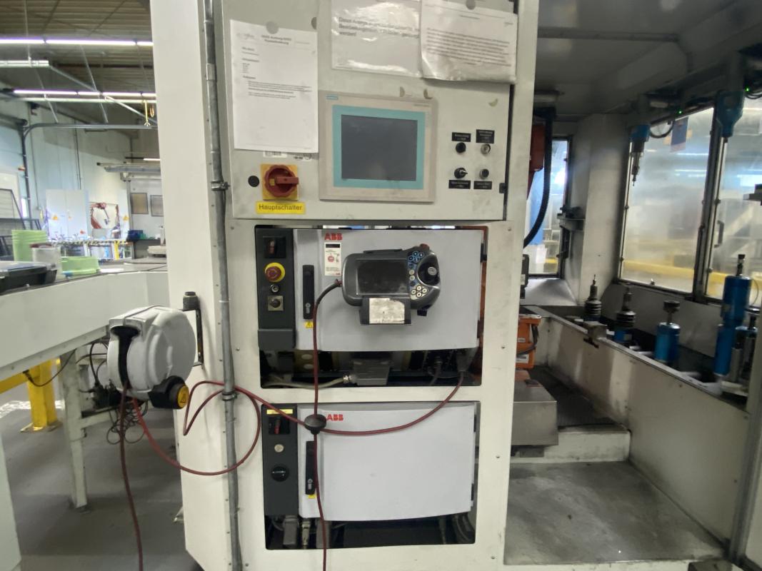 Fabrikat: WMS, Baujahr: 2006, Ma.-Nr.: 791/3, 12 Entgratstationen, Steuerung, Fabr. Siemens, 6-Achs-Roboter, Fabr. ABB, IRC 5, Rundlaufförderanlage, Fabr. EWAB