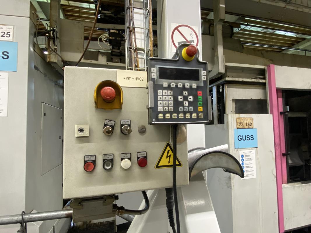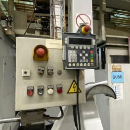 L 36.000 mm, 3x Transportschlitten, je 2x Greifer, Aufgabe-/Entnahmestation, 4x Zwischenstationen, Anbindung an 4 Bearbeitungszentren von oben, Förderanlage, Fabr. EWAB