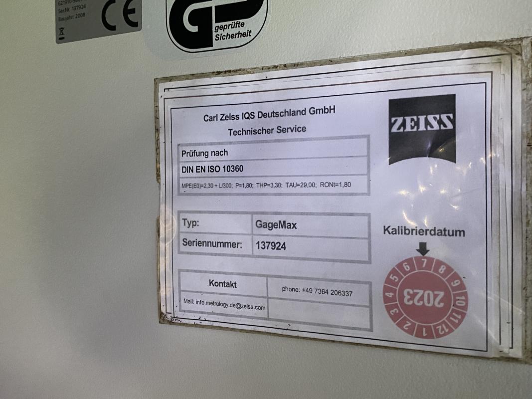 Fabrikat: CARL ZEISS, Typ: GageMax Navigator 11/5/5, Baujahr: 2008, Ma.-Nr.: 137924, Messbereich 750 x 500 x 500 mm, Software Calypso 5.6, Prüfkopf, Fabr. ZEISS, Typ VAST XT, Bestückungssystem, Fabr. TAS, externer Schaltschrank/Steuerrechner, Bj 2008, Bildschirm ohne Funkion,