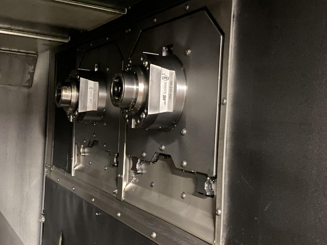 Fabrikat: SW / EMAG, Typ: BA 422, Baujahr: 2011, Ma.-Nr.: 2380010, Steuerung, Fabr. Siemens, 4 Spindeln, Verfahrweg X/Y/Z 400 x 500 x 425 mm, Drehzahl max. 17.500 U/min, Wechseltisch, 2x 36-fach Werkzeugwechsler, Werkzeugaufnahme HSK 63, Späneförderer, Fabr. Knoll, Typ 800 K-12011, Ma.-Nr.: 478816, Kühlanlage, Fabr. Knoll Typ FKA/1200, Bj. 2011, Ma.-Nr. 480369, Zwischenverkauf vorbehalten