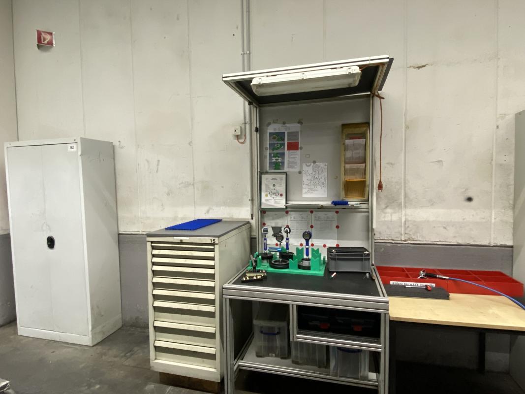 mit 14 Werkzeugaufnahmen VDI 40, z.T. angetrieben, 1 Montagetisch Alu Systemprofile, 1 Schubladenschrank. 9 Auszüge, 4 Messuhren digital, 4 Kalibrierringe