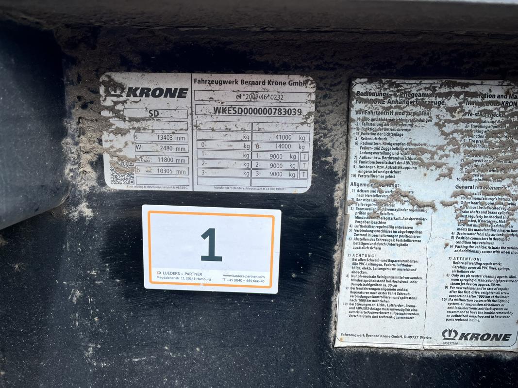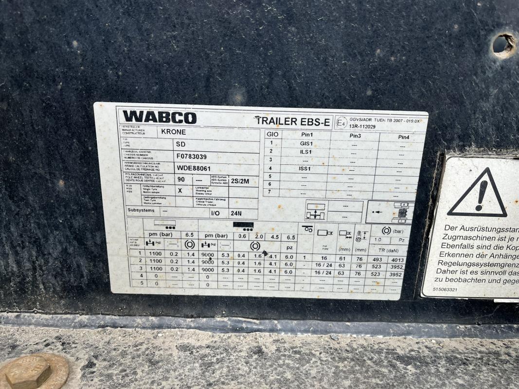 Fabrikat: KRONE, Typ: SD-DA08CLSA, Baujahr: 2017, WKESD000000783039, EZ 10/17, zulässiges Gesamtgewicht 40.000 kg, letzte HU 10/24_SP 04/24