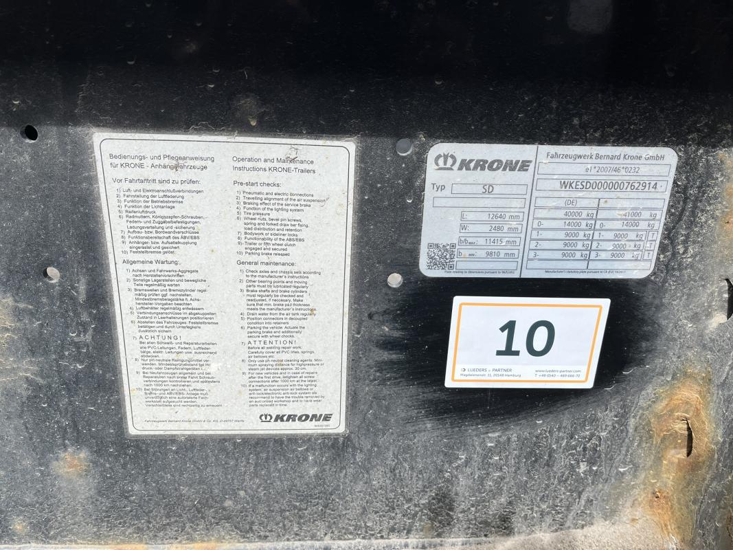 Fabrikat: KRONE, Typ: DA08CLSA, Baujahr: 2017, WKESD000000762914, EZ 03/17, zulässiges Gesamtgewicht 40.000 kg, letzte HU 03/24_SP 09/24