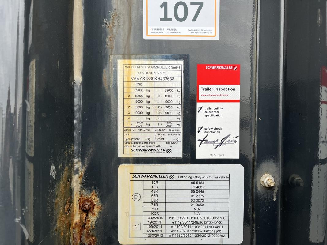 Fabrikat: SCHWARZMÜLLER, Typ: Y-Serie, Baujahr: 2019, VAVYS1339KH433638, EZ 05/19, zulässiges Gesamtgewicht 39.000 kg, Rundholzrunge Fab. eccosteel, letzte HU 06/24_SP 12/23