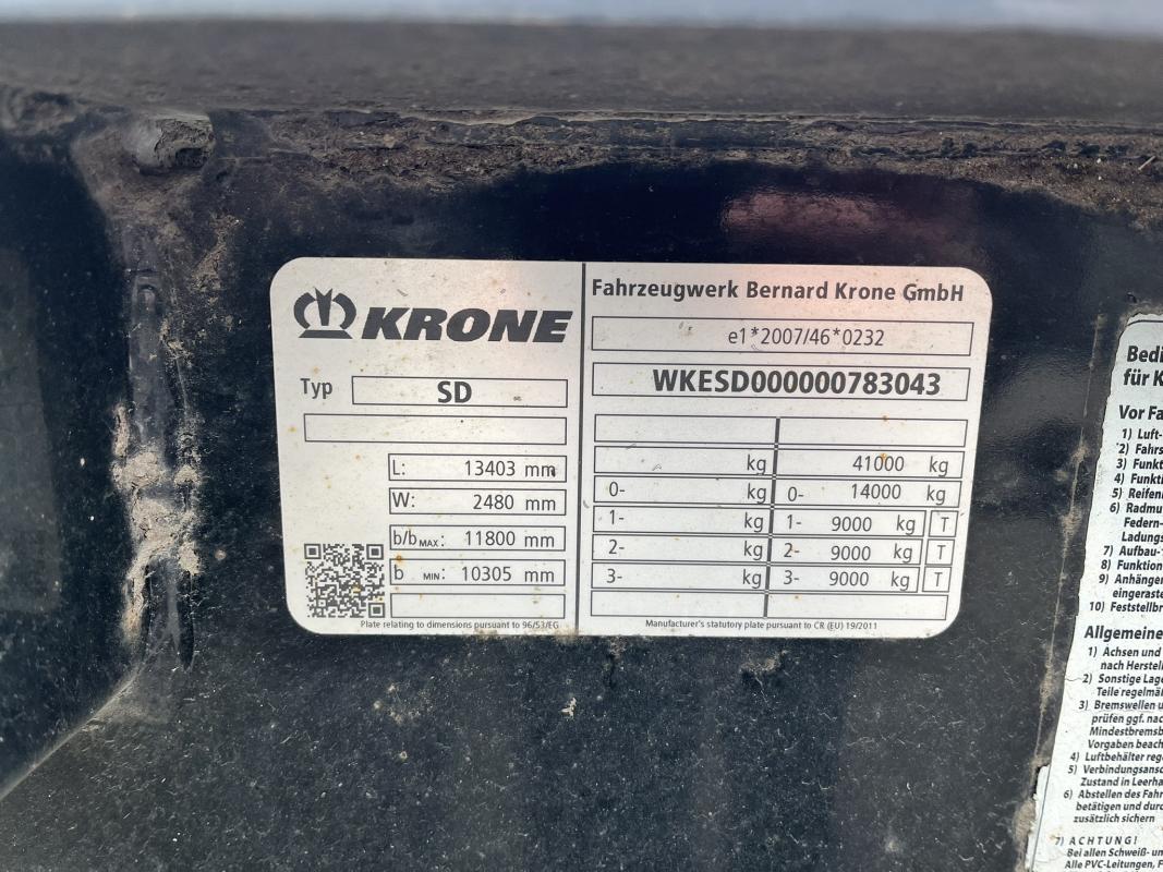 Fabrikat: KRONE, Typ: SD-DA08CLSA, Baujahr: 2017, WKESD000000783043, EZ 10/17, zulässiges Gesamtgewicht 40.000 kg, letzte HU 10/24_SP 04/24
