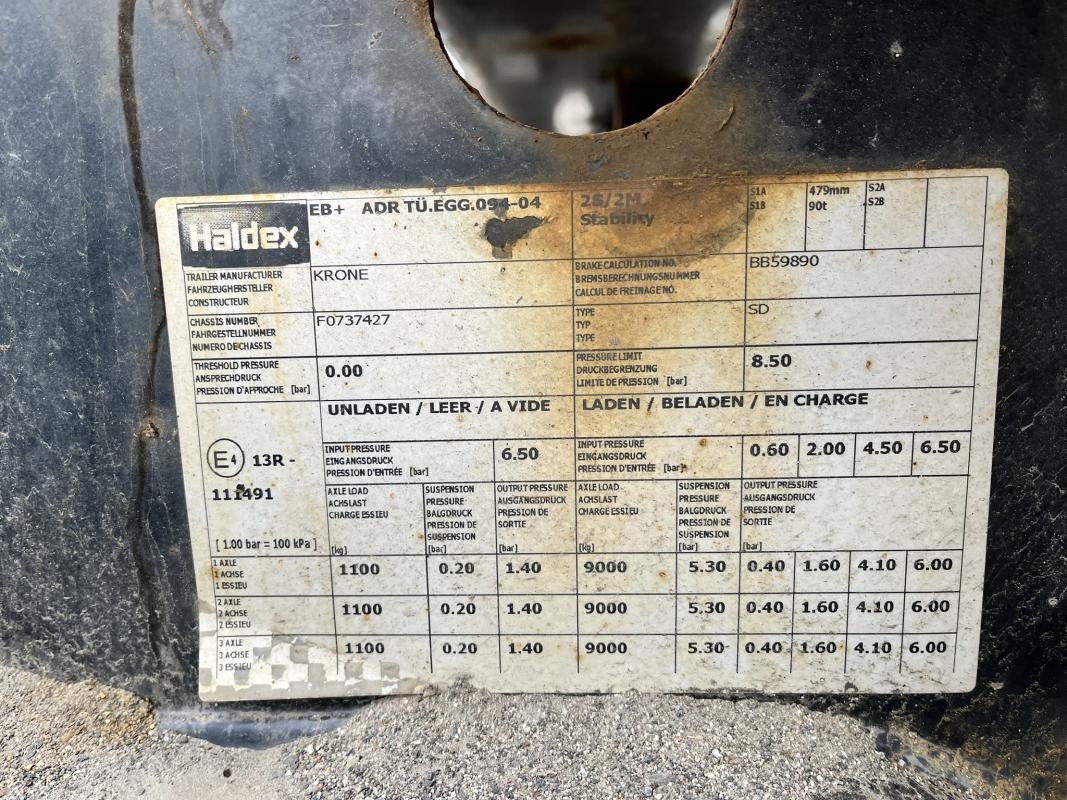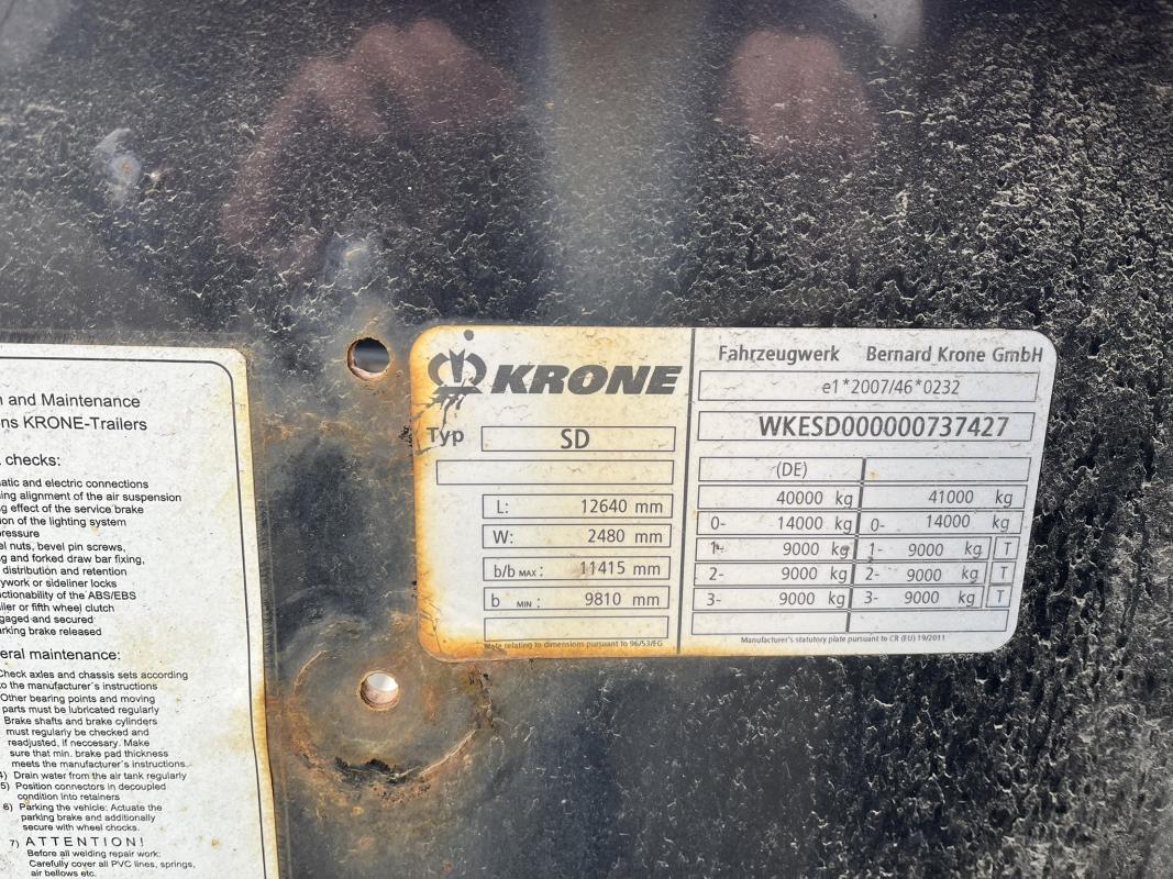 Fabrikat: KRONE, Typ: SD-DA08CLSA, Baujahr: 2016, WKESD000000737427, EZ 10/16, zulässiges Gesamtgewicht 40.000 kg, letzte HU 11/24_SP 06/24