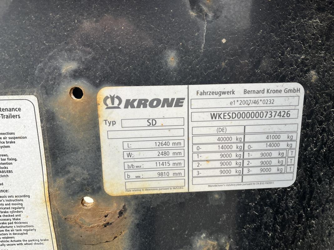 Fabrikat: KRONE, Typ: SD-DA08CLSA, Baujahr: 2016, WKESD000000737426, EZ 10/16, zulässiges Gesamtgewicht 40.000 kg, letzte HU 10/24_SP 04/24