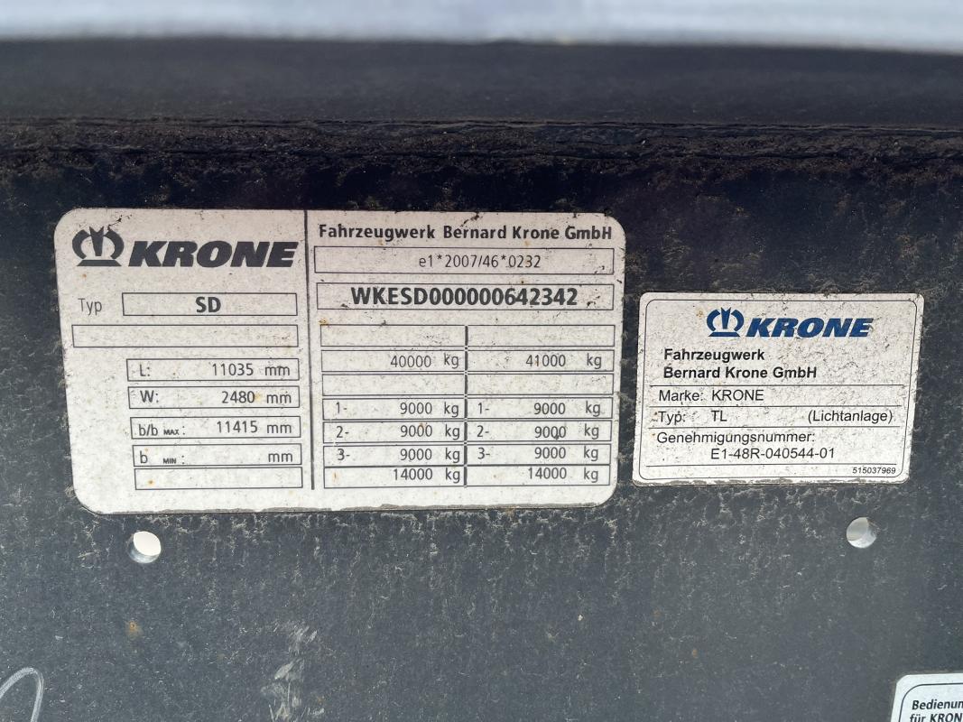 Fabrikat: KRONE, Typ: SD-DA08CLSA, Baujahr: 2015, WKESD000000642342, EZ 10/15, zulässiges Gesamtgewicht 40.000 kg, letzte HU 11/24_SP 05/24