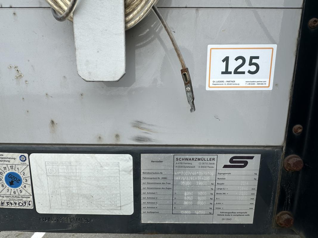Fabrikat: SCHWARZMÜLLER, Typ: J-Serie, Baujahr: 2014, VAVJS1339EH344096, EZ 05/14, zulässiges Gesamtgewicht 34.000 kg, Plane, XL-Code zertifiziert, letzte HU 07/24_SP 01/24
