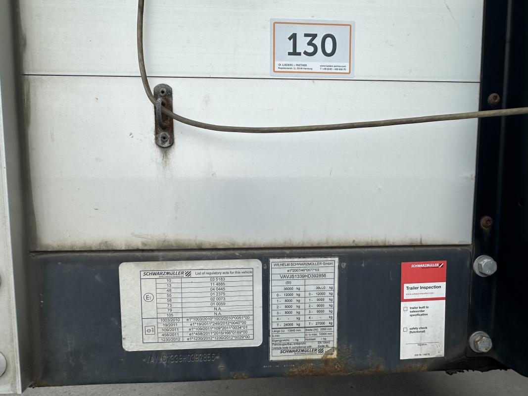 Fabrikat: SCHWARZMÜLLER, Typ: J-Serie, Baujahr: 2017, VAVJS1339HD392856, EZ 09/17, zulässiges Gesamtgewicht 36.000 kg, Plane, XL-Code zertifiziert, letzte HU 11/24_SP 04/24