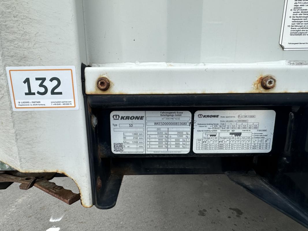 Fabrikat: KRONE, Typ: SD-DA08CLSA, Baujahr: 2018, WKESD000000833680, EZ 06/18, zulässiges Gesamtgewicht 36.000 kg, letzte HU 07/24_SP 01/24