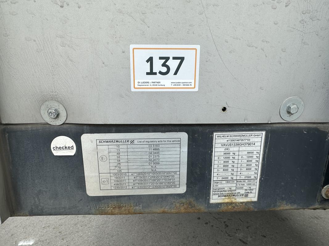 Fabrikat: SCHWARZMÜLLER, Typ: J-Serie, Baujahr: 2017, VAVJS1339GH379014, EZ 09/17, zulässiges Gesamtgewicht 36.000 kg, Plane, XL-Code zertifiziert, letzte HU 10/25_SP 04/24