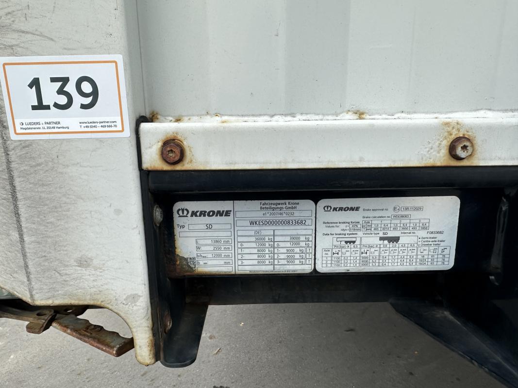 Fabrikat: KRONE, Typ: SD-DA08CLSA, Baujahr: 2018, WKESD000000833682, EZ 06/18, zulässiges Gesamtgewicht 36.000 kg, letzte HU 07/24_SP 01/24