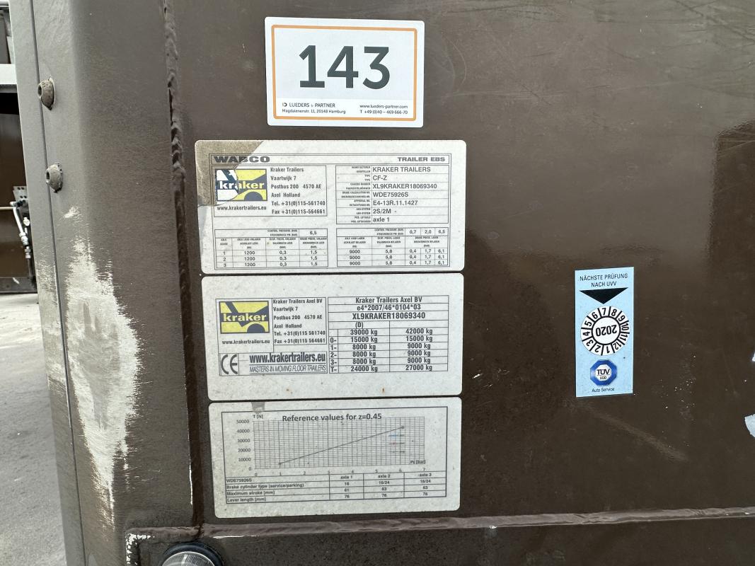 Fabrikat: KRAKER TRAILERS, Typ: CF-200, Baujahr: 2018, XL9KRAKER18069340, EZ 07/18, zulässiges Gesamtgewicht 39.000 kg, letzte HU 07/24_SP 01/24