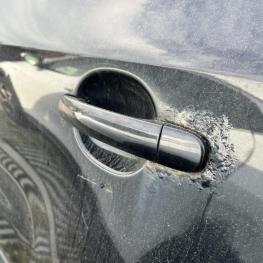 Schäden/Mängel: umlaufende Anrostungen, starke Gebrauchsspuren, Beule hinten li, Steinschläge