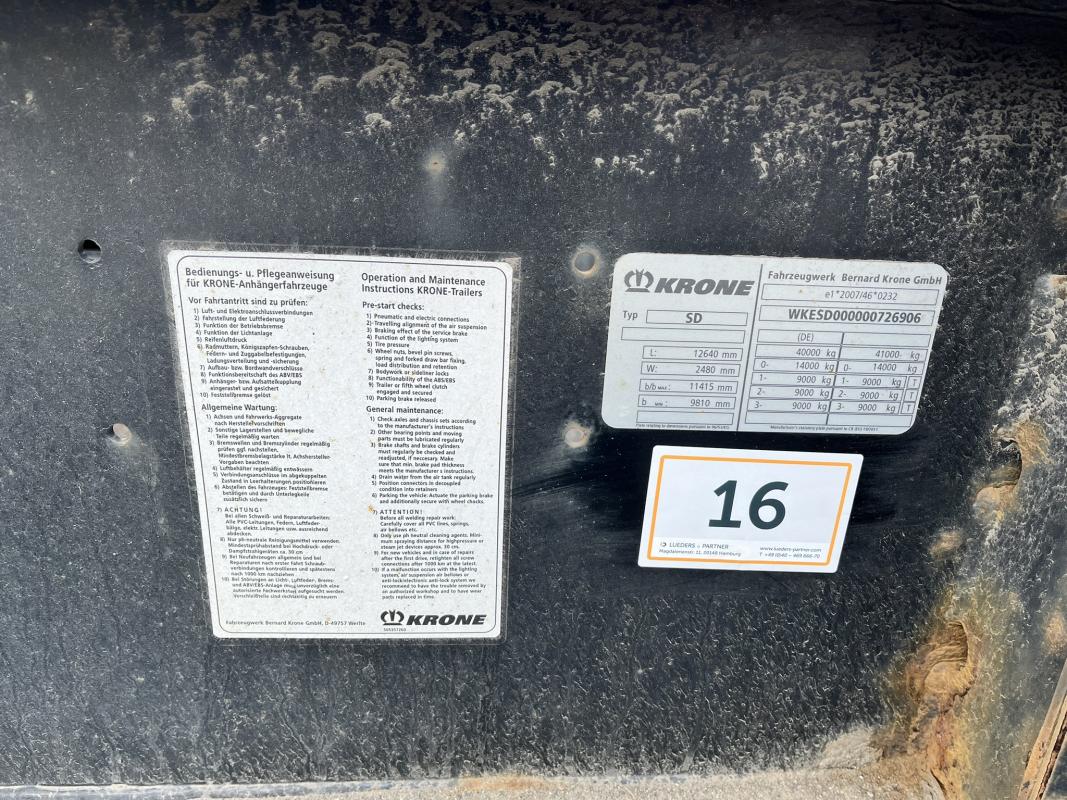 Fabrikat: KRONE, Typ: SD-DA08CLSA, Baujahr: 2016, WKESD000000726906, EZ 07/16, zulässiges Gesamtgewicht 40.000 kg, letzte HU 08/24_SP 03/24