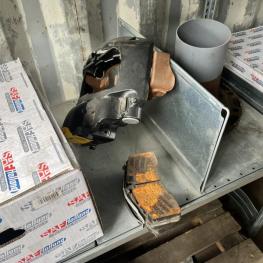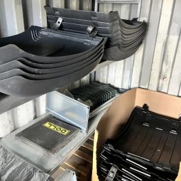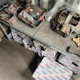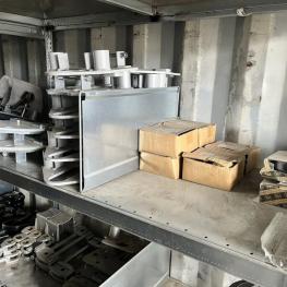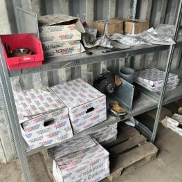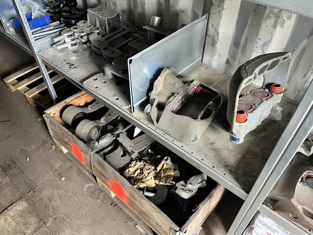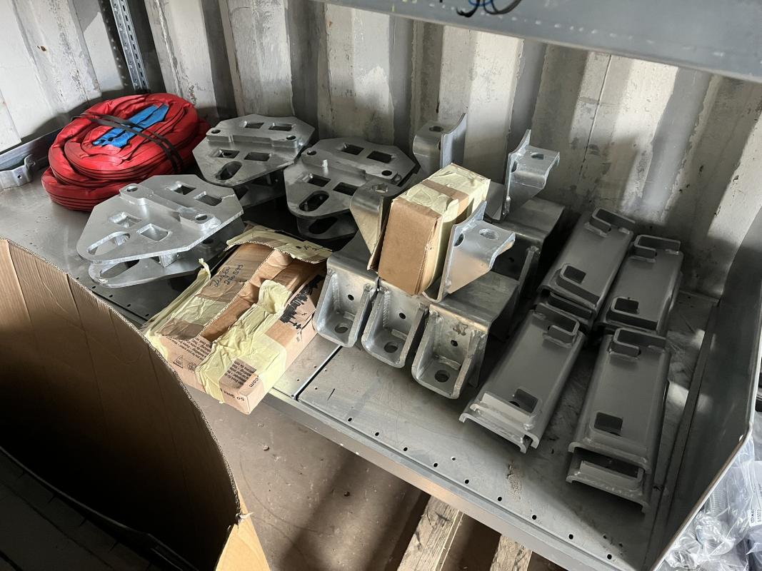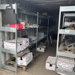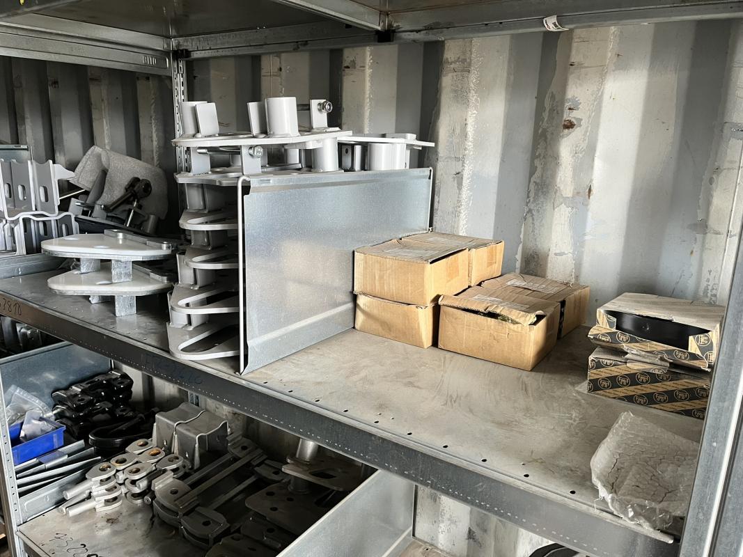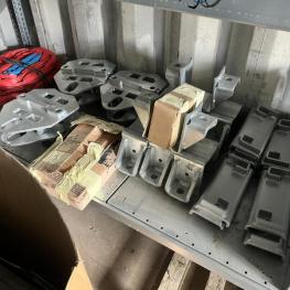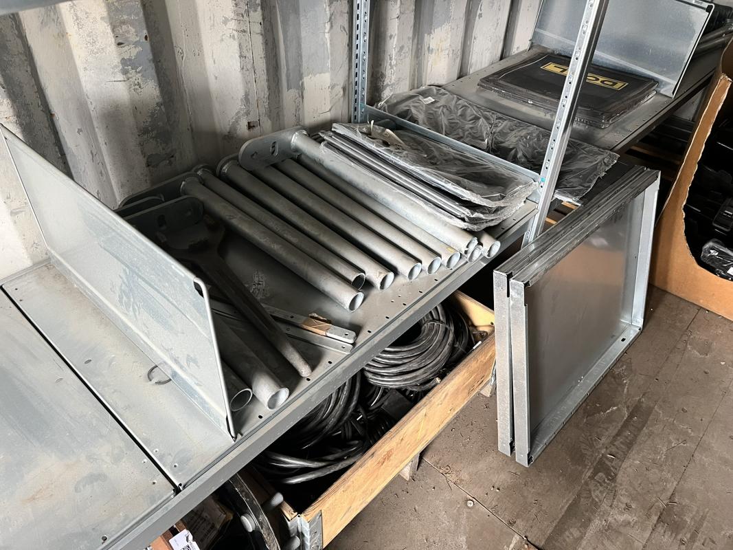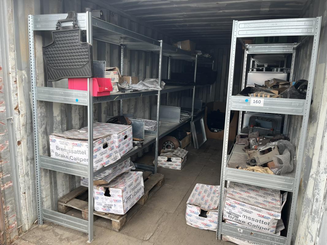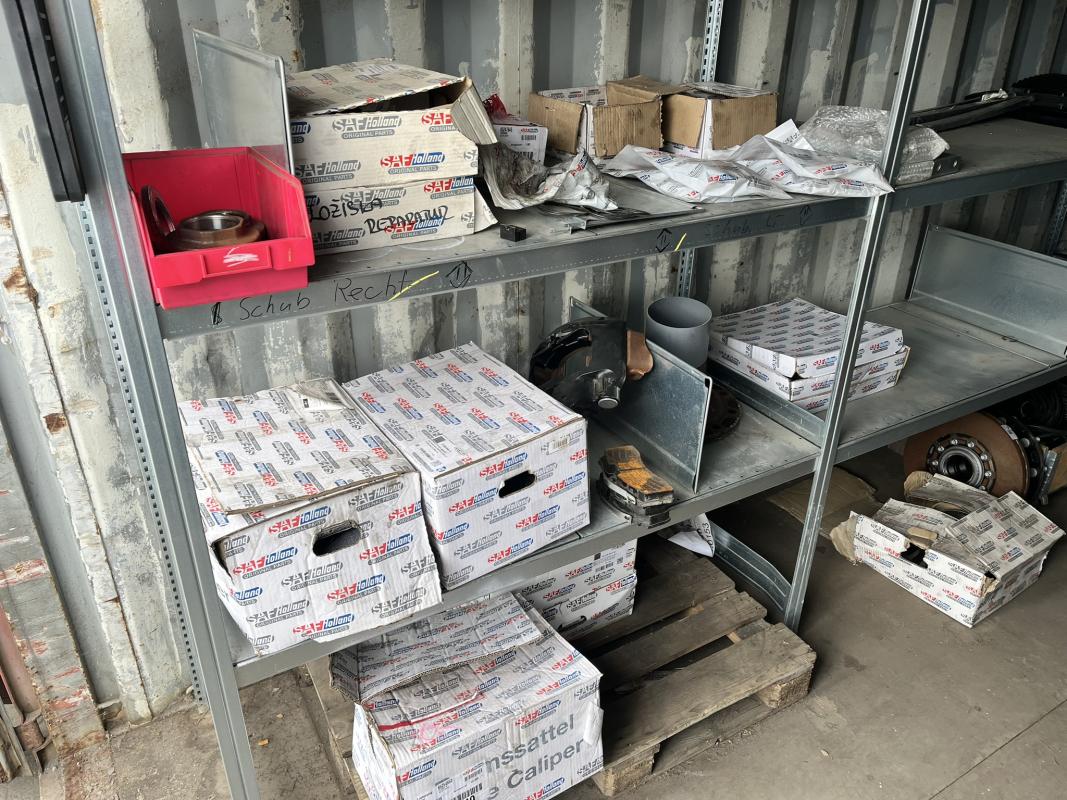 best. aus: Fachbodenregalanlage 2x 3teilig, Feldbreite je 1.600 mm, 3 Ebenen mit Bestand an div. Zubehör für LKW-Auflieger lt. Auflistung