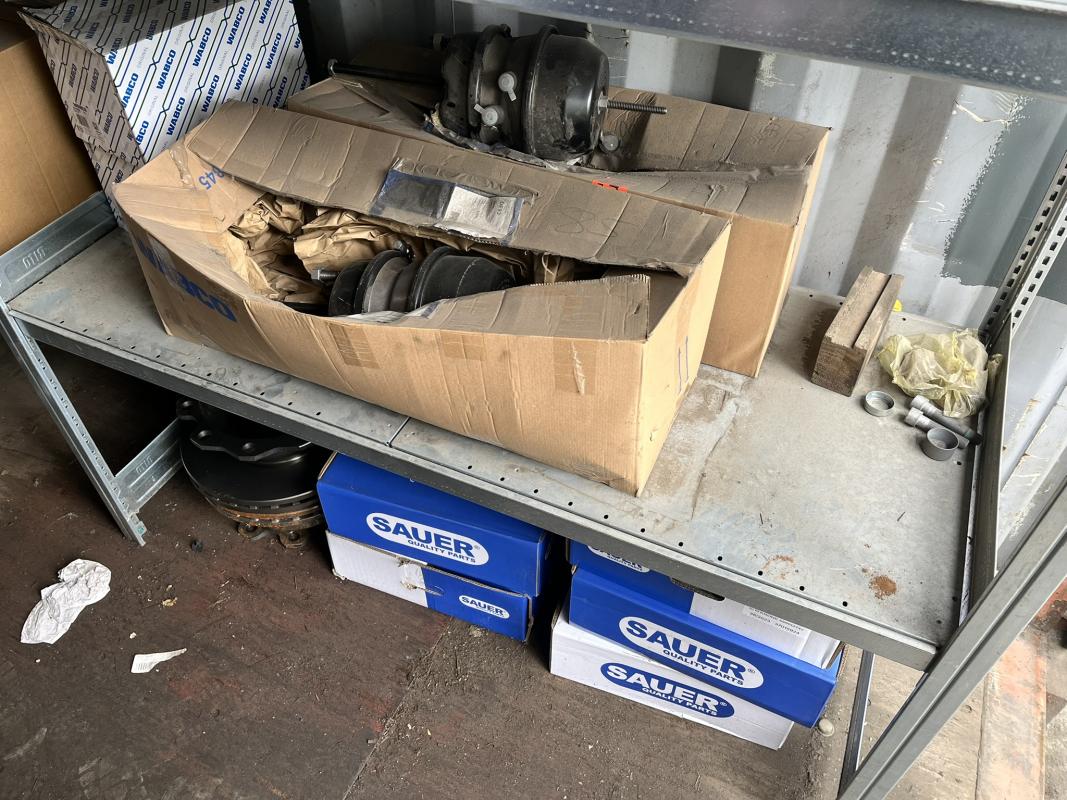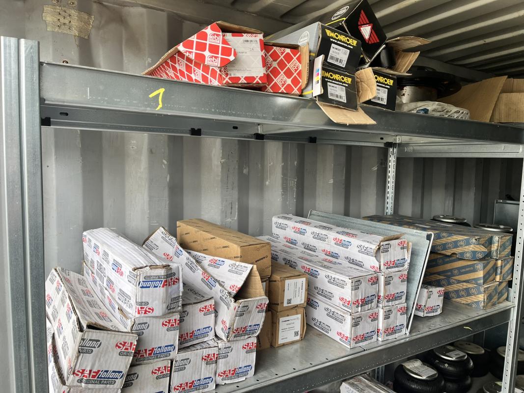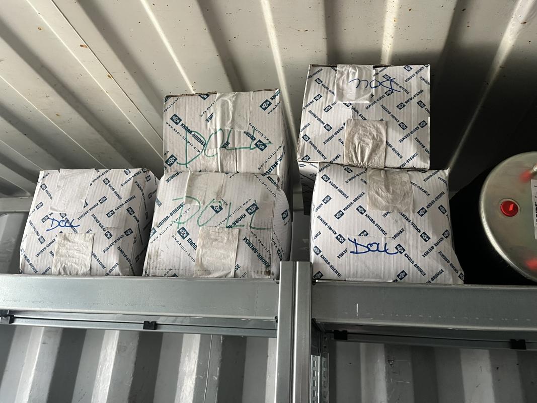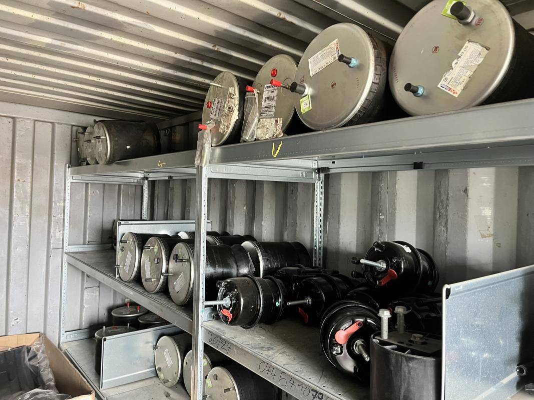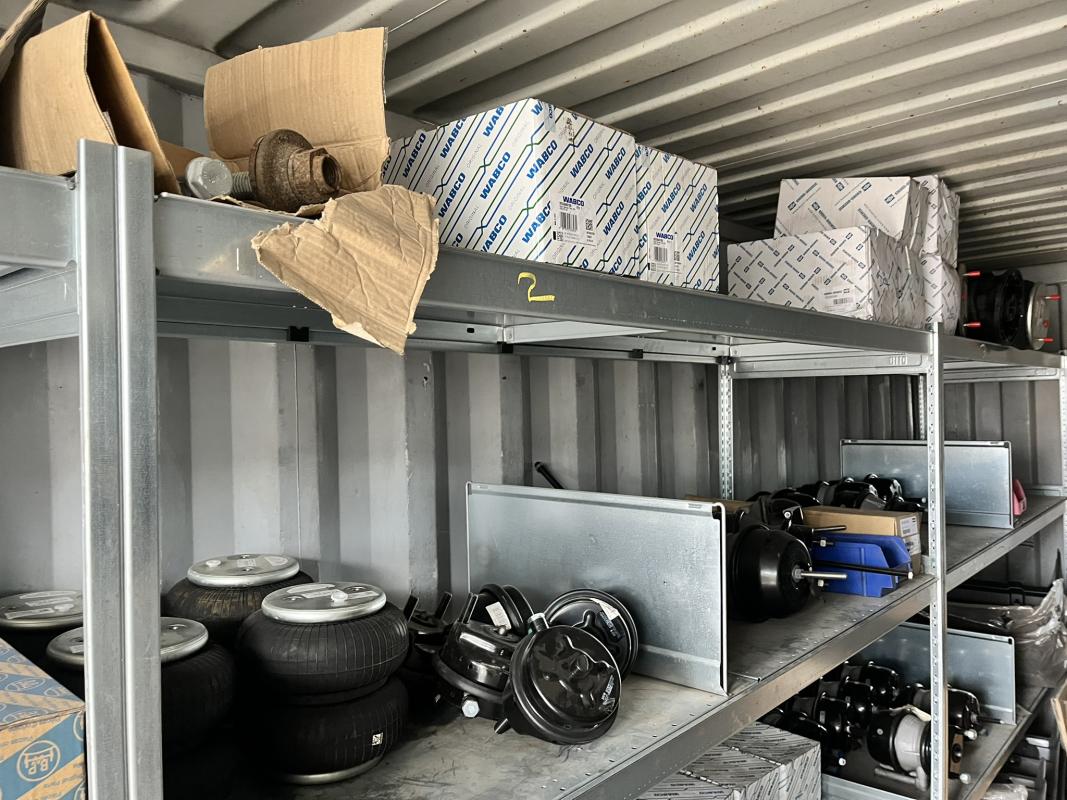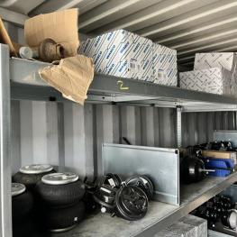 best. aus: Fachbodenregalanlage 2x 3teilig, Feldbreite je 1.600 mm, 3 Ebenen mit Bestand an div. Zubehör für LKW-Auflieger lt. Auflistung