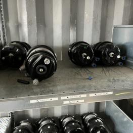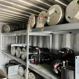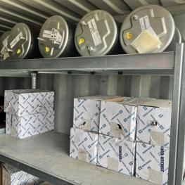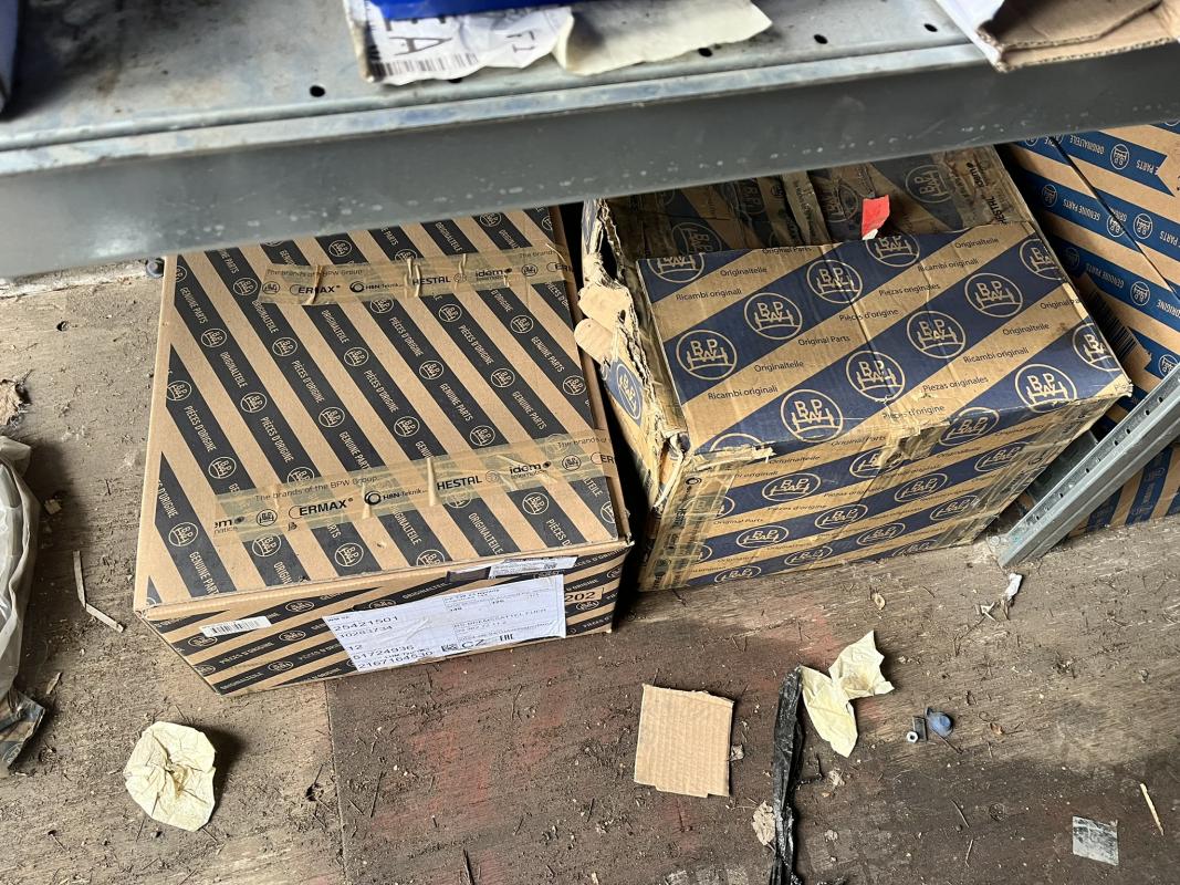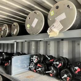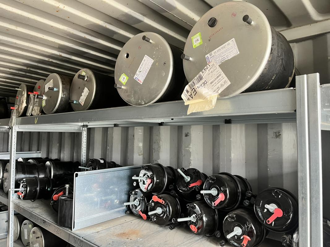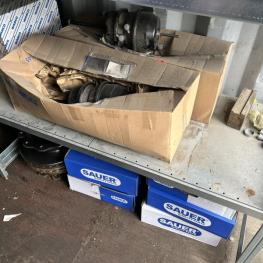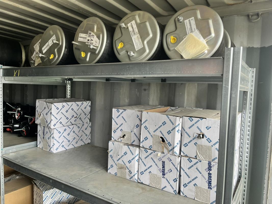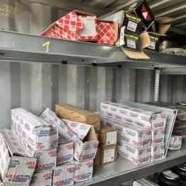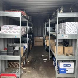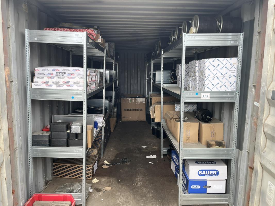 best. aus: Fachbodenregalanlage 2x 3teilig, Feldbreite je 1.600 mm, 3 Ebenen mit Bestand an div. Zubehör für LKW-Auflieger lt. Auflistung