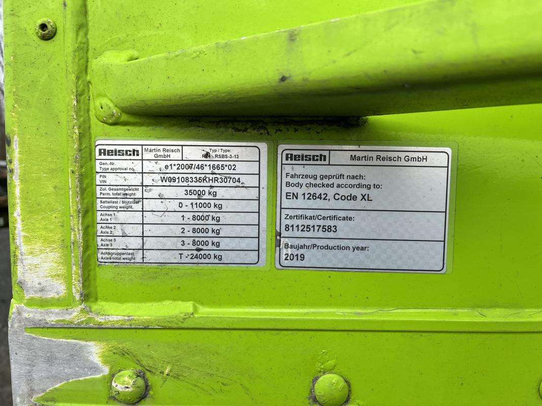 Fabrikat: REISCH, MARTIN, Typ: RSBS-3-13, Baujahr: 2019, W09108335KHR30704, EZ 06/19, zulässiges Gesamtgewicht 35.000 kg, letzte HU 10/24_SP 03/24