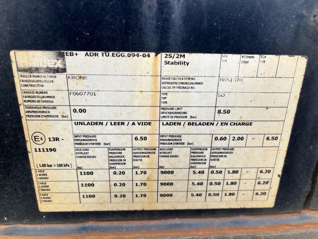 Fabrikat: KRONE, Typ: SD-DA08CLSA, Baujahr: 2014, WKESD000000607701, EZ 02/14, zulässiges Gesamtgewicht 40.000 kg, letzte HU 03/23_SP 09/23