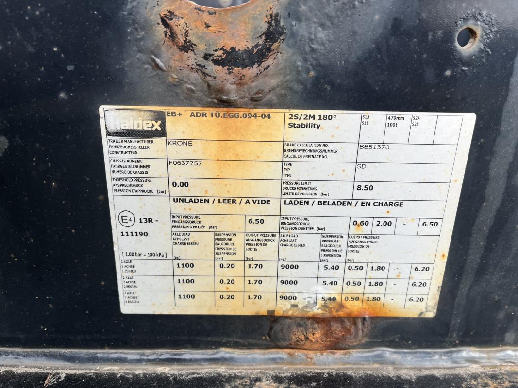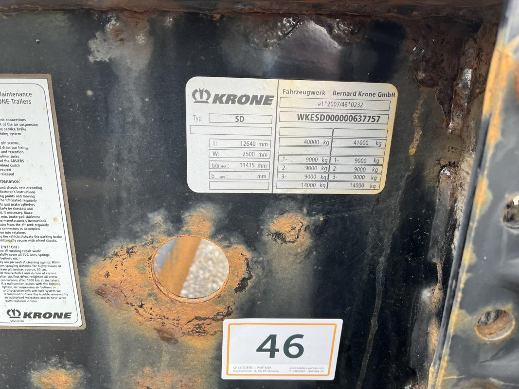 Fabrikat: KRONE, Typ: SD-DA08CLSF, Baujahr: 2014, WKESD000000637757, EZ 10/14, zulässiges Gesamtgewicht 41.000 kg, letzte HU 10/22_SP 04/23
