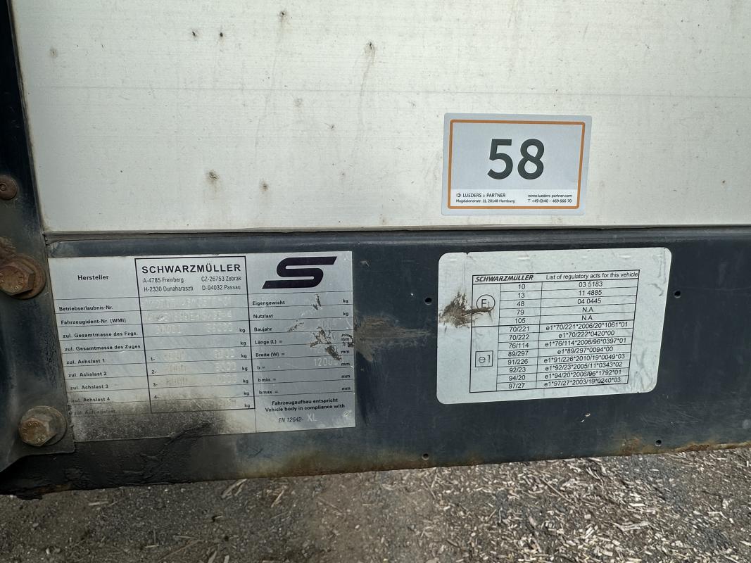 Fabrikat: SCHWARZMÜLLER, Typ: J-Serie, Baujahr: 2014, VAVJS1339EH343644, EZ 06/14, zulässiges Gesamtgewicht 36.000 kg, letzte HU 07/24_SP 01/24