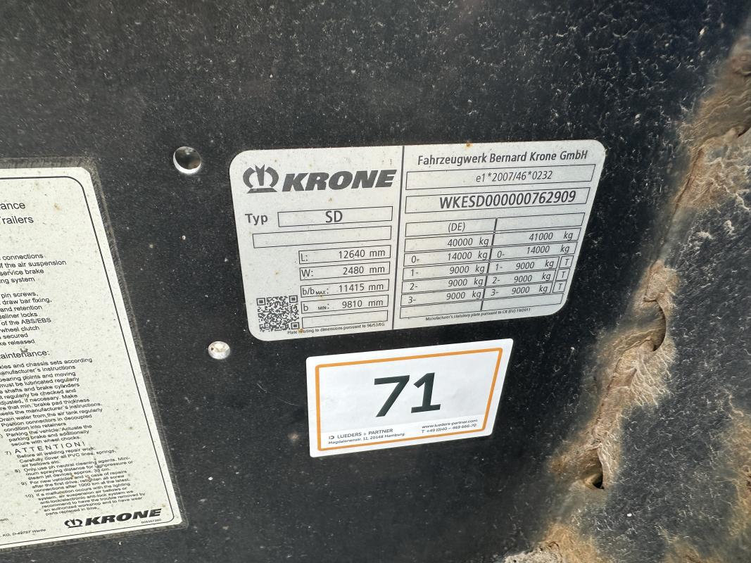 Fabrikat: KRONE, Typ: DA08CLSA, Baujahr: 2017, WKESD000000762909, EZ 03/17, zulässiges Gesamtgewicht 40.000 kg, letzte HU 03/24_SP 09/24