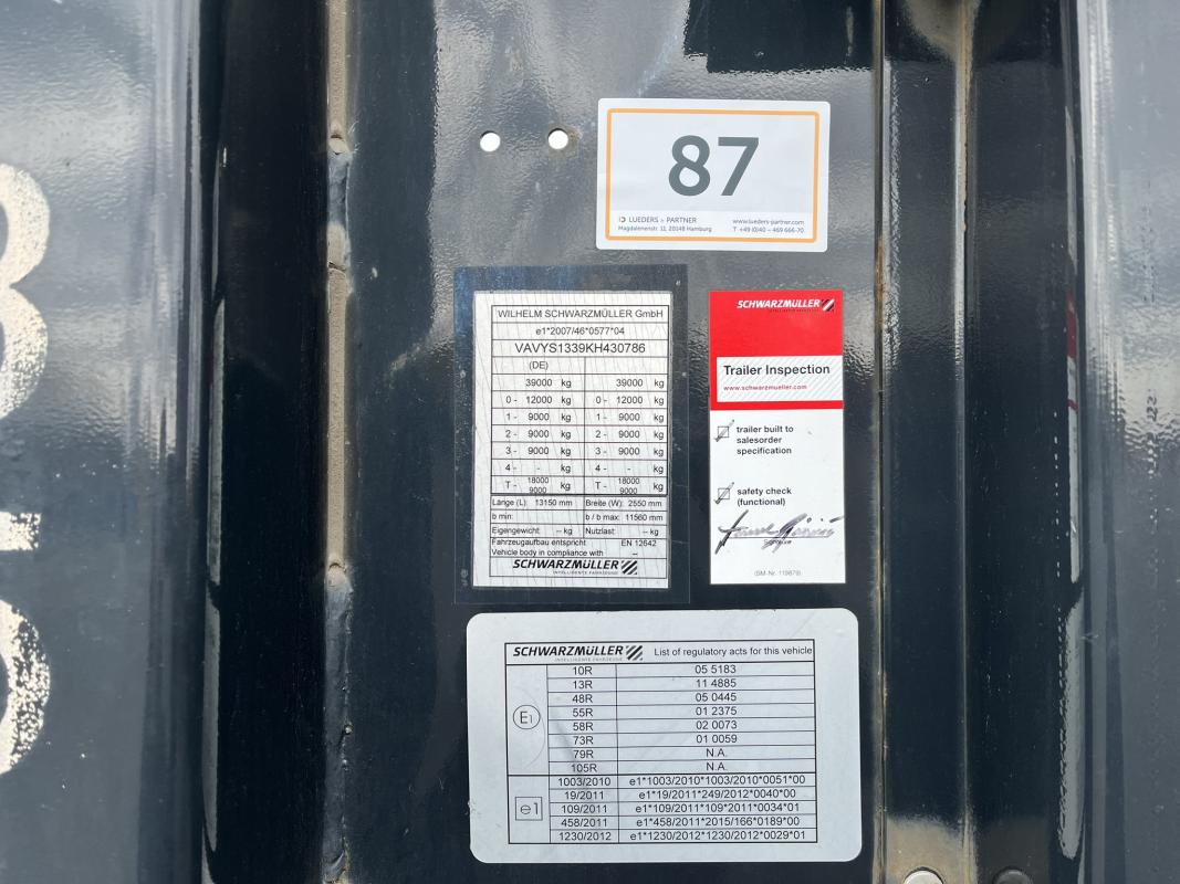 Fabrikat: SCHWARZMÜLLER, Typ: Y-Serie, Baujahr: 2019, VAVYS1339KH430786, EZ 03/19, zulässiges Gesamtgewicht 39.000 kg, Rundholzrungen, letzte HU 04/24_SP 10/24