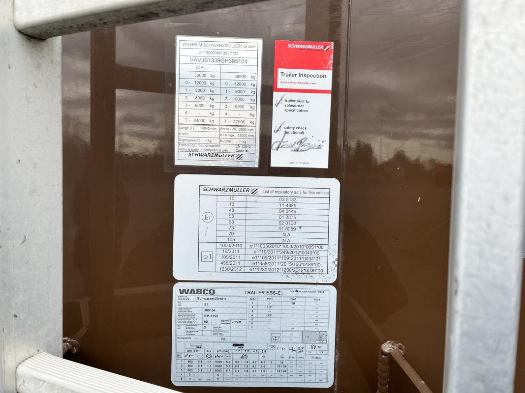 Fabrikat: SCHWARZMÜLLER, Typ: J-Serie, Baujahr: 2016, VAVJS1339GH385104, EZ 10/16, zulässiges Gesamtgewicht 36.000 kg, Schubboden 8 mm (nicht gedreht), letzte HU 11/222_SP 05/23