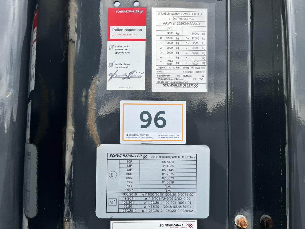 Fabrikat: SCHWARZMÜLLER, Typ: Y-Serie, Baujahr: 2019, VAVYS1339KH433640, EZ 05/19, zulässiges Gesamtgewicht 39.000 kg, Rundholzrunge Fab. eccosteel, letzte HU 06/24_SP 12/23