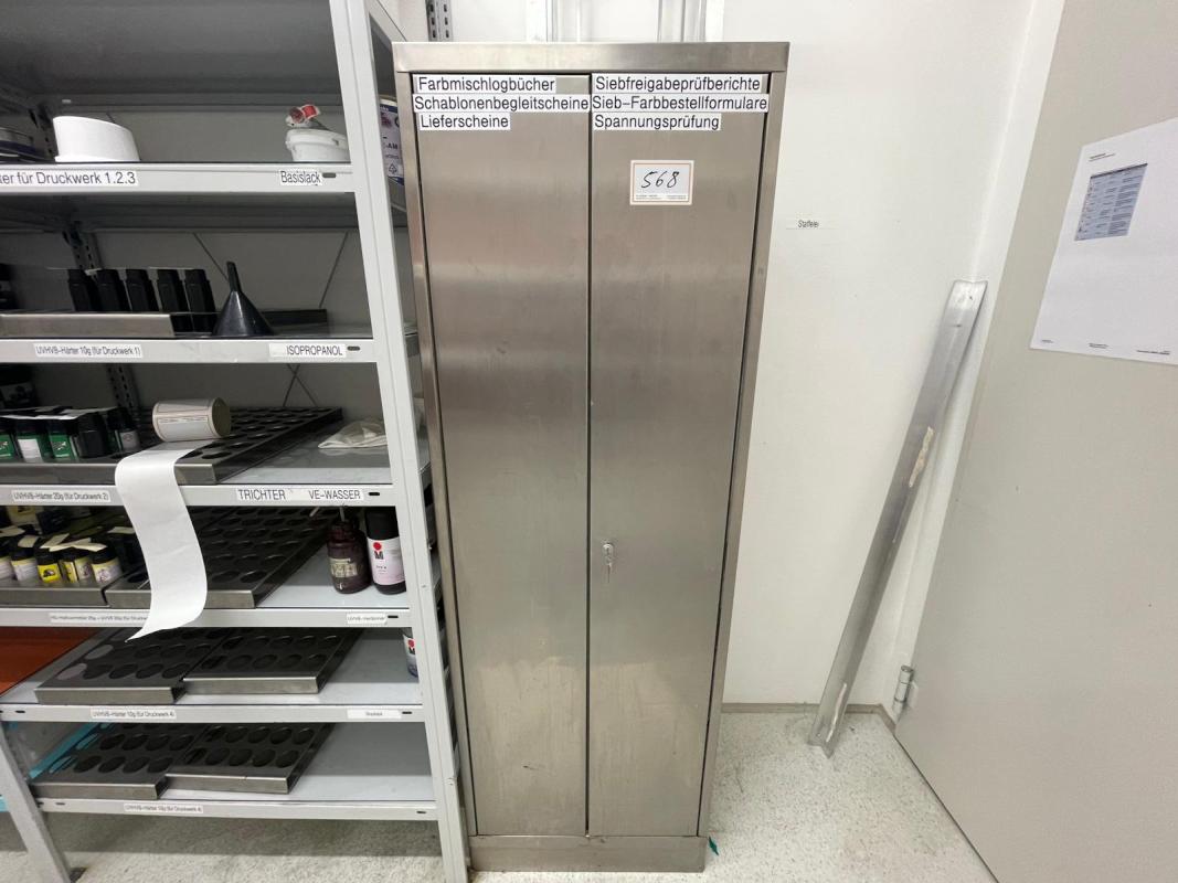 (B / T / H) ca. 600 x 500 x 1.800 mm, abschließbar, ohne Inhalt