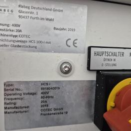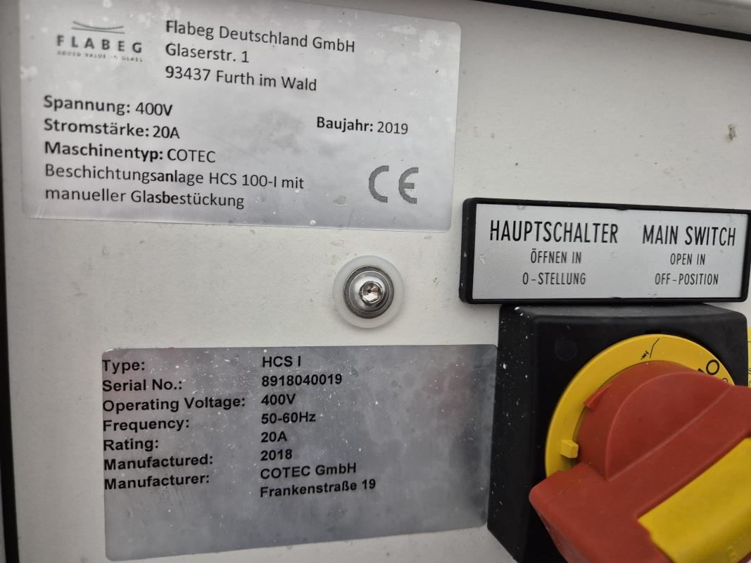 Fabrikat: COTEC, Typ: HCS 100-I, Baujahr: 2018, Ser.-Nr. 8918040019, Steuerung, Fabr. Beckhoff, Touch-Bedienfeld, manuelle Glasbestückung, Arbeitsbereich ca. Ø 600 x 500 mm, Trocknung, Werkstückautomation, Sicherheitseinrichtungen, Schalt-und Steuerschränke