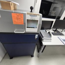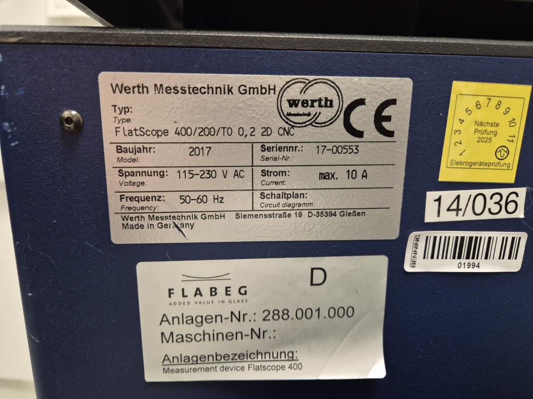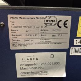 Fabrikat: WERTH, Typ: FlatScope 400/200/T0 0,2 2D CNC, Baujahr: 2017, Ser.-Nr. 17-00553, Messbereich 400 x 200 mm, geschlossene Bauweise, Rechnereinheit, 3x Monitore, 2x Tastatur, 2x Maus, Tisch, Stahlschrank 1.000 x 400 x 2.000 mm ohne Inhalt