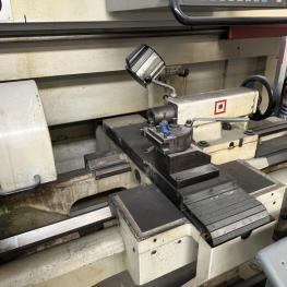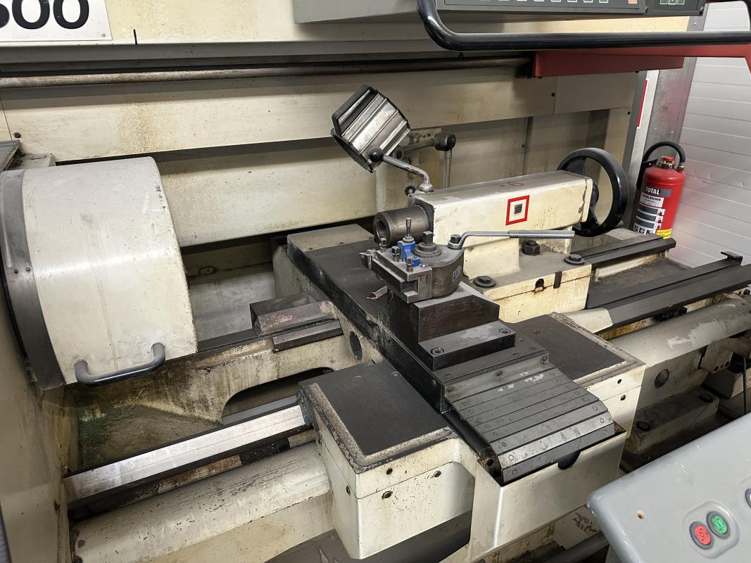 Fabrikat: GILDEMEISTER, Typ: N.E.F. Plus 500, Baujahr: 1996, Ser.-Nr. 504375, NC-Steuerung, Grundig Manual Plus, Dreh-Ø 290/ 500 mm, Drehlänge max. 1.000 mm, Drehzahl max. 2.800 U/min., Spindelbohrung 70 mm, Dreibackenfutter, Reitstock, Schnellwechselstahlhalter, System Multifix, 3 Stahlhalterkassetten, Dreibackenfutter Röhm-Ø 200 mm