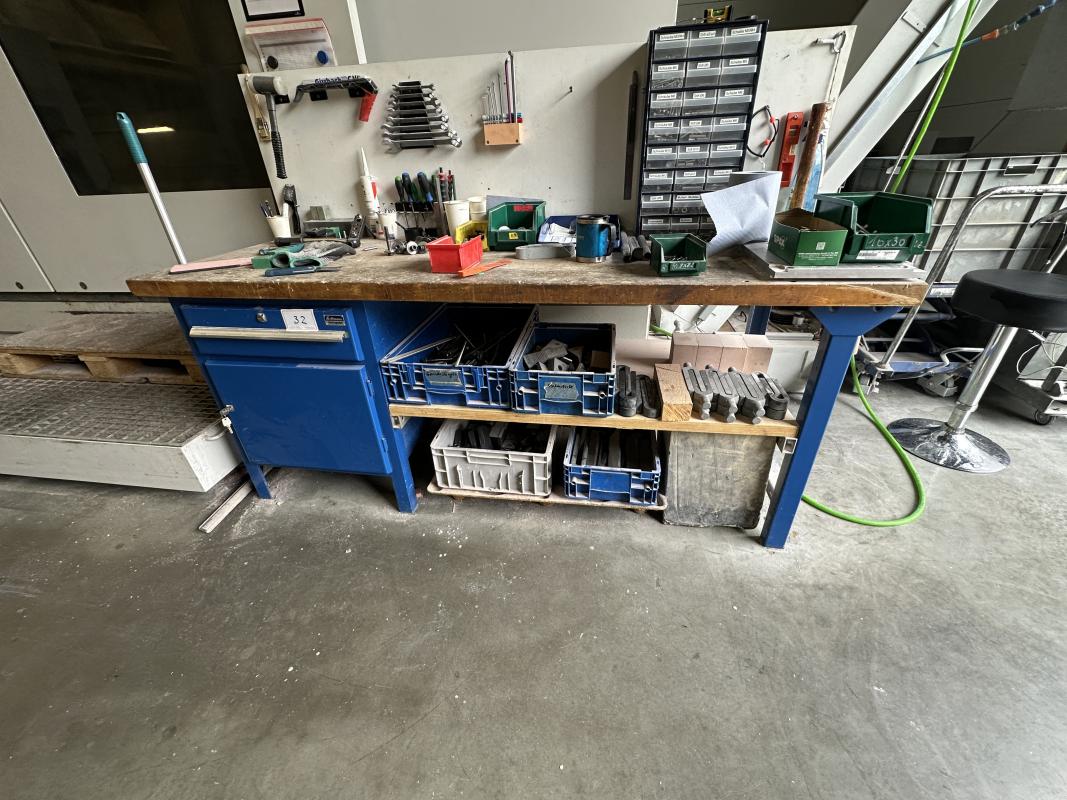 Fabrikat: HOFFMANN, 2.000 x 750 mm Unterschrank, 1 Schubfach, Türelement, 1 Werkzeugcontainer, B 600 mm, 6 Schubfächer, Inhalte: Rüstwerkzeuge, Spannmittel