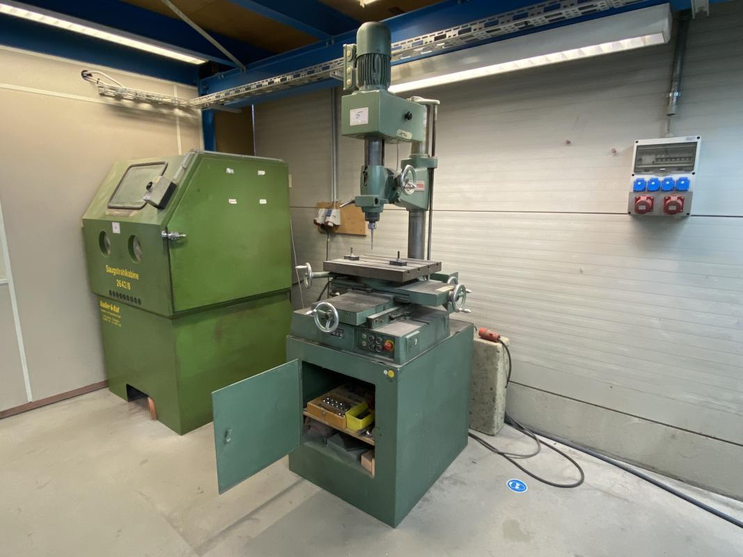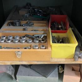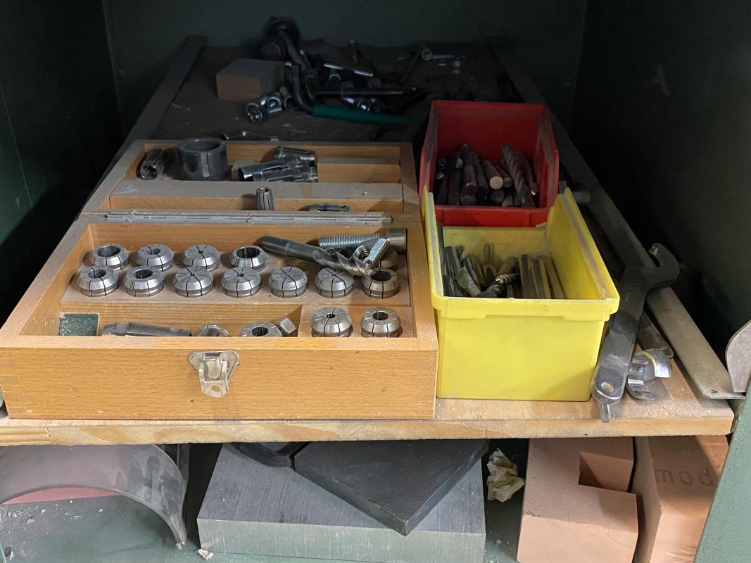 Fabrikat: ZIMMERMANN, Typ: FZ1, Baujahr: 1986, Ser.-Nr. 911, Kreuztisch ca. 490 x 400 mm, Verfahrweg X/Y/Z 320 x 385 x 430 mm, Drehzahl 560 - 14.000 U/min, Werkzeugaufnahme SK 30, 1 Posten Spannzangen, Schaftfräser