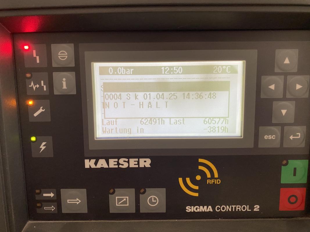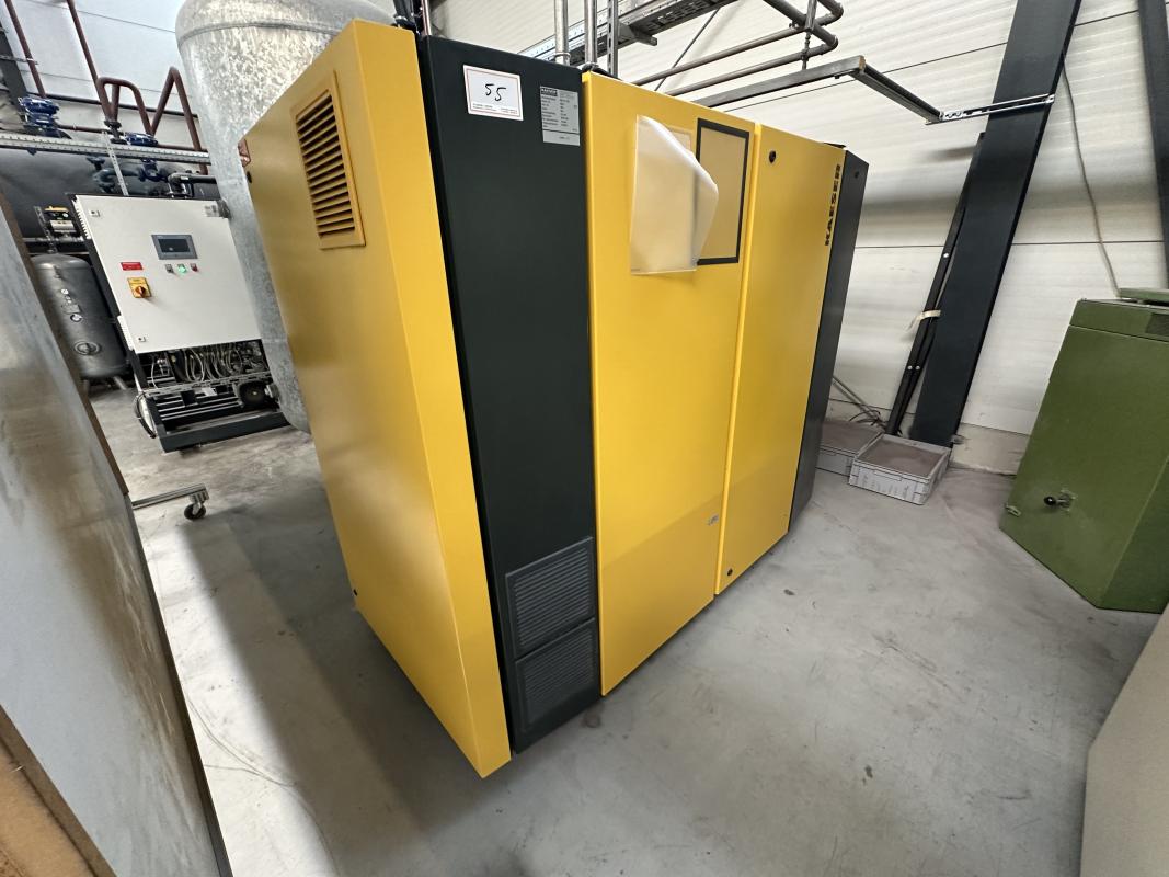 Fabrikat: KAESER, Typ: BSD75T SFC, Baujahr: 2017, Ser.-Nr. 4087, Steuerung Kaeser Sigma Control 2, RFID fähig, Druck max. 15 bar, elektr. Leistung 37 KW, Druckluft-Kältetrockner, Typ ABT83, Bj. 2017, Ser.-Nr. 3087, Drucklufttank, stehend, verzinkt, Bj. 2016, Volumen 3.000 l, Betriebsstunden LAST 6.057h