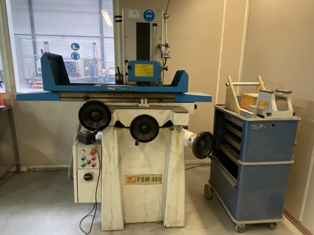 Fabrikat: KNUTH, Typ: FSM480, Baujahr: 2013, Ser.-Nr. 151429, Magnetaufspannplatte 300 x 130 mm, Verfahrwege X/Y 480 x 230 mm, Abstand Spindelachse-Tischoberfläche 470 mm, Kühlmitteleinrichtung HBM, Maschinenbeleuchtung, 1 Auswuchtwaage
