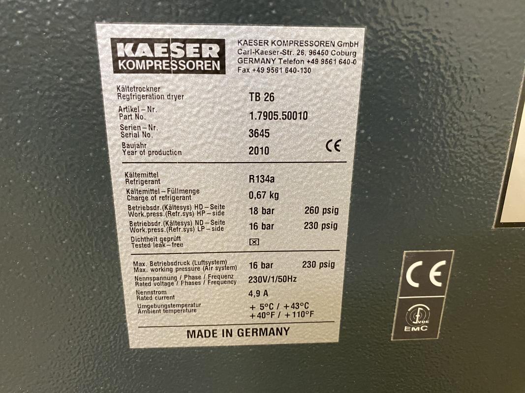 Fabrikat: KAESER, Typ: TB 26, Baujahr: 2010, Schraubenkompressor, Kaeser SK 19, Kompressorsteuerung Sigma Control Basic, DL Tank OKS, Bj. 2015, Inhalt 500 l, Öl Wasserabscheider+++ Achtung: spätere Freigabe 29. August +++