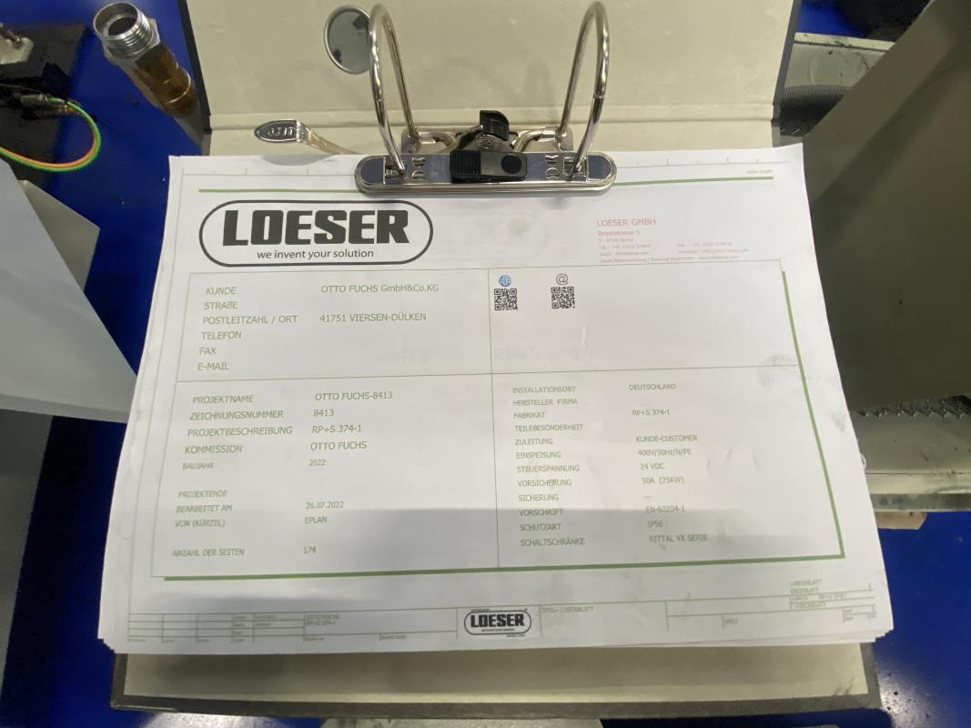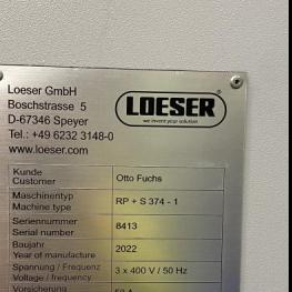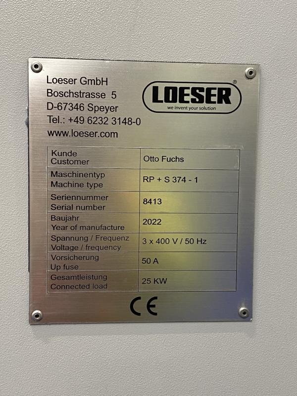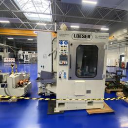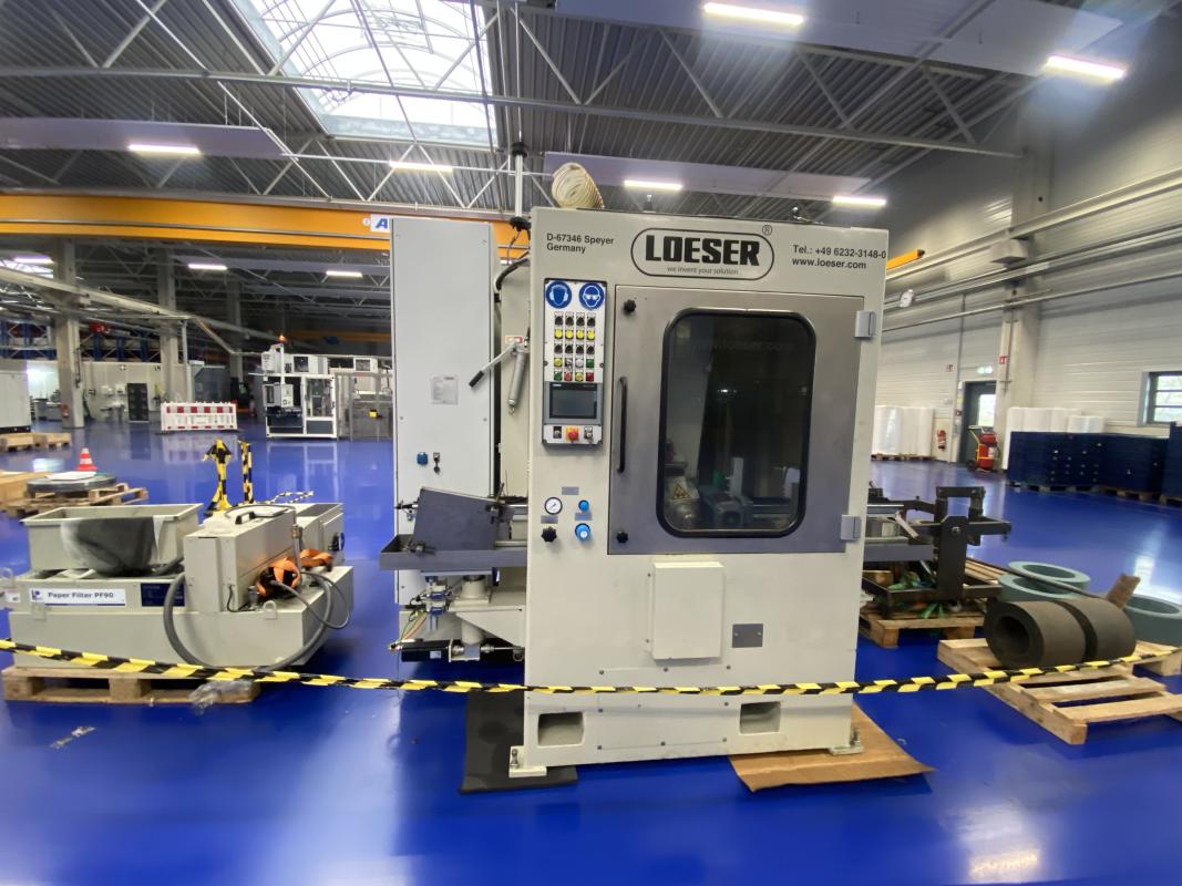 Fabrikat: LÖSER, Typ: RP + S 374-1, Baujahr: 2022, Ser.-Nr. 8413, für zylindrische Bauteile (polieren, entgraten) SPS Steuerung mit Display Fabr. Siemens, Typ HMI Touch, Kühlmittelanlage mit Bandfilter, Fabr. Stevens, Typ PF90, Ölnebelabsaugung, Fabr. LTA, Typ E 120 X-1-H, 1 Bestand an Zubehör und Ersatzteilen