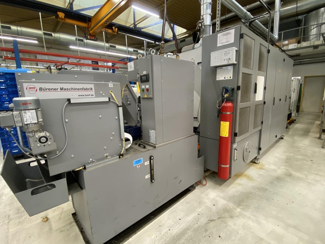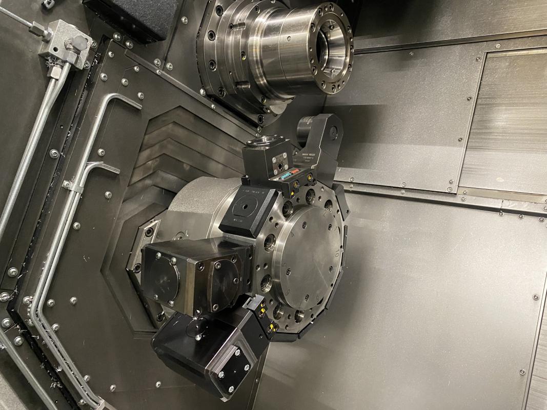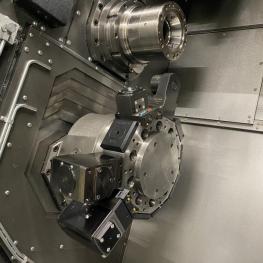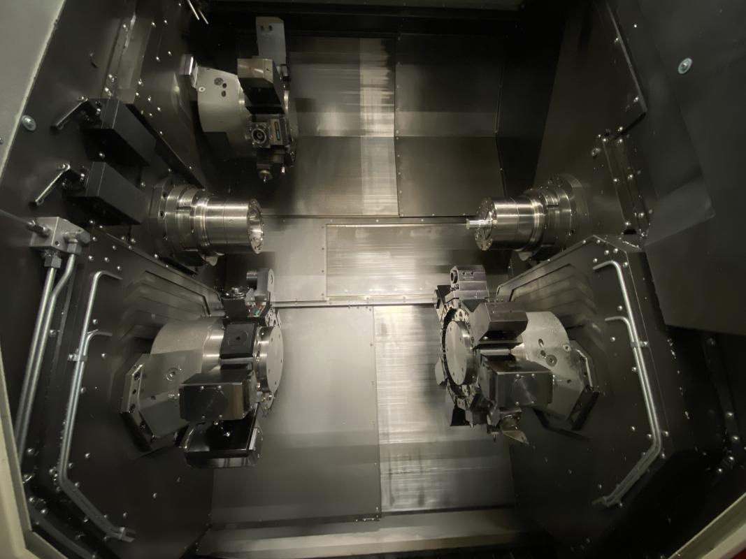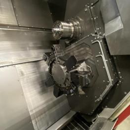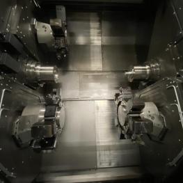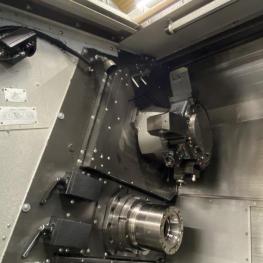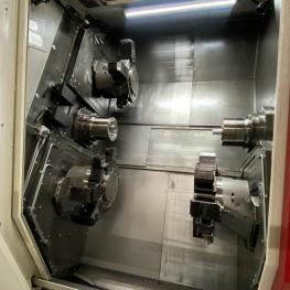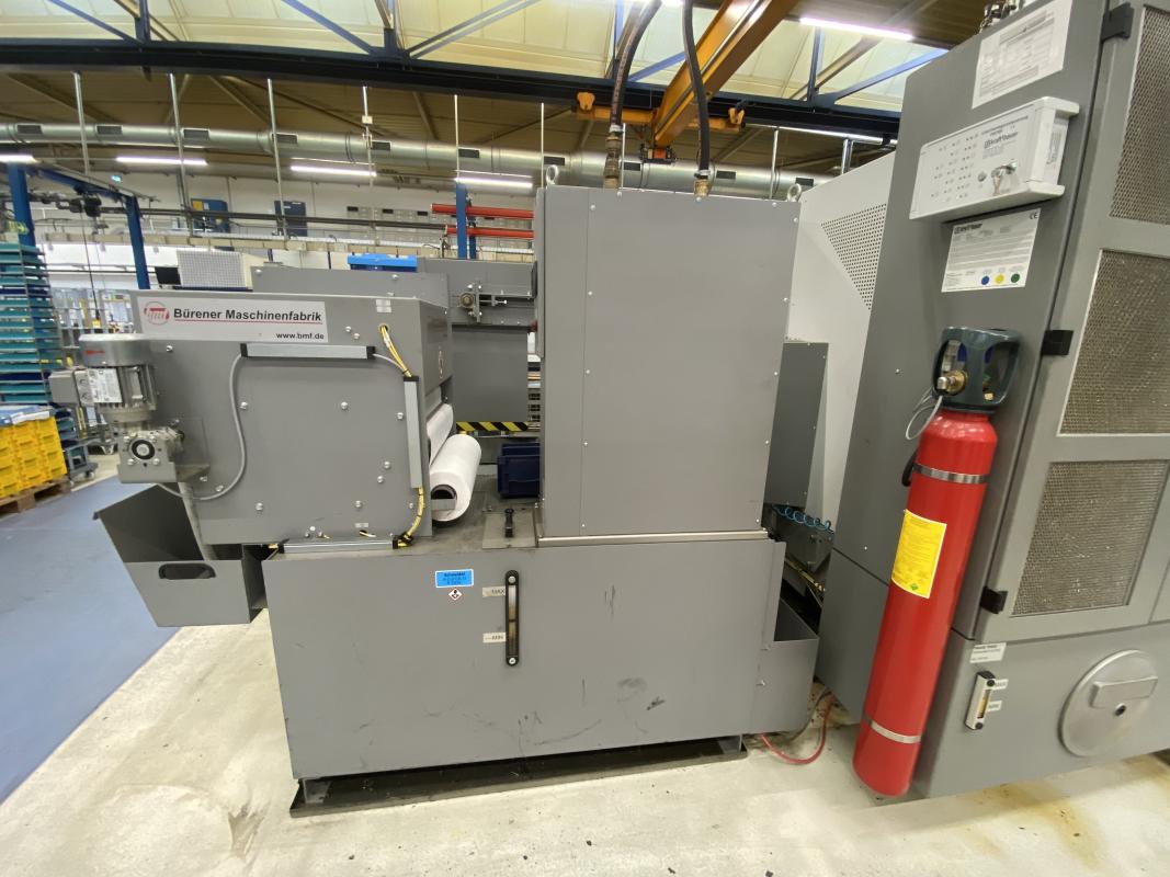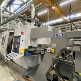 Fabrikat: TRAUB, Typ: TNX65, Baujahr: 2021, Ser.-Nr. 7060703, Steuerung, Fabr. Traub, Typ TX8i-S, 12 Achsen, Stangen-Ø 65 mm, Hauptspindel, Gegenspindel, 3x 10-fach Werkzeugrevolver mit angetr. Werkzeugstationen, Verfahrwege X/Z 175 x 650 mm, 3x Y-Achse +/- 40 mm, 2x C-Achse, Drehzahl Hauptspindel 5.000 U/min., Drehzahl Gegenspindel 7.000 U/min., Stangenlademagazin, Fabr. FMB, Typ Turbo 5-65, Ser.-Nr. 410750, Kühlschmierstoffanlage, Hochdruckpumpe, Bandfilter, Späneförderer, CO2-Löschanlage, Fabr. Kraft + Bauer, abgel. Betriebsstd. 10.257