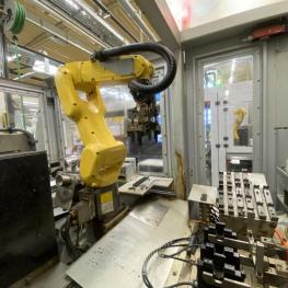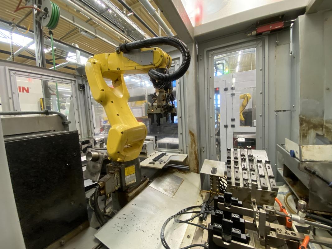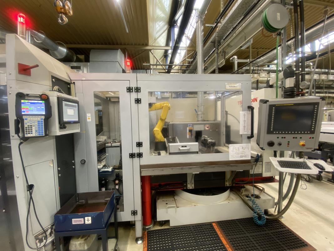 Fabrikat: TSCHUDIN, Typ: ecoLine 400 CNC, Baujahr: 2015, Ser.-Nr. 15.E400.195, Steuerung, Fabr. Fanuc, Typ Oi-M, 3 Achsen, Schleif-Ø Durchgangschleifen 100 mm, Schleif-Ø Einstechschleifen 150 mm, Schleifscheibenabmessung Ø 400 x 280 mm, Abrichtspindel AGE 80.02-6000, Abrichtdiamant für Schleifscheibe/Regelscheibe, Auswuchtgerät ELASO ebg 1500, inline Messgerät, Fabr. Stotz, Bj. 2017, Ser.-Nr. 18564, Roboterzelle, Fabr. HT, Typ SRZ200/7-14P, Bj. 2016, Ser.-Nr. 141213424, Abmessung B/T 800 x 2.200 mm, 2 Roboter, Fabr. Fanuc, Typ 200iD/7L, Robotersteuerung, Handbedienterminal Touch, Schubladenspeicher für für 14 Paletten, Palettengr. B/T/H 400 x 600 x 60 mm, SPC Ausschleusung, Kabine VSG Glas, Sicherheitseinrichtungen
