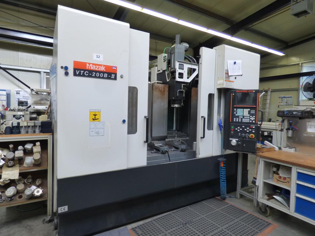 Fabrikat: MAZAK, Typ: VTC-200B-II, Baujahr: 2006, Ser.-Nr. 181504, Steuerung, Typ Mazatrol 640M, Aufspanntisch 1.500 x 500 mm, Verfahrwege X/Y/Z 1.120 x 510 x 510 mm, Tischbelastung max. 800 kg, Spindeldrehzahl max. 12.000 U/min, 24-fach Werkzeugwechsler, 3 Hochdruck-Schraubstöcke