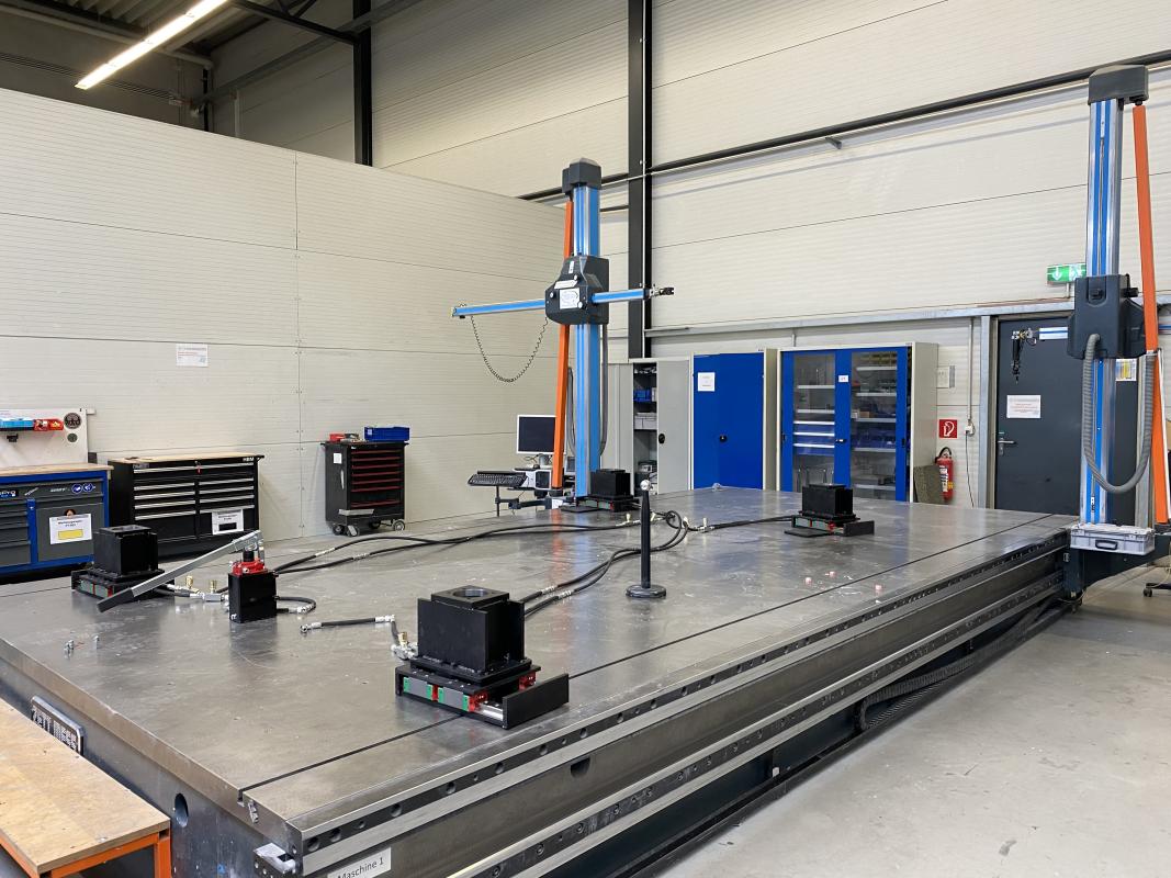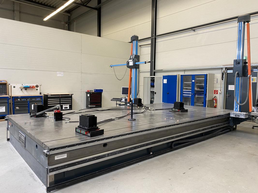 Fabrikat: ZETT MESS, Typ: AMS 18/16, Baujahr: 1998, Ser.-Nr. 1618, Plattengröße 6.000 x 3.000 mm, 2x Messarm, Messbereich Y/Z 1.600 x 1.800 mm, 2x Messrechner, 2x Digitalanzeige Quadra Check