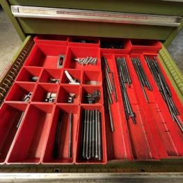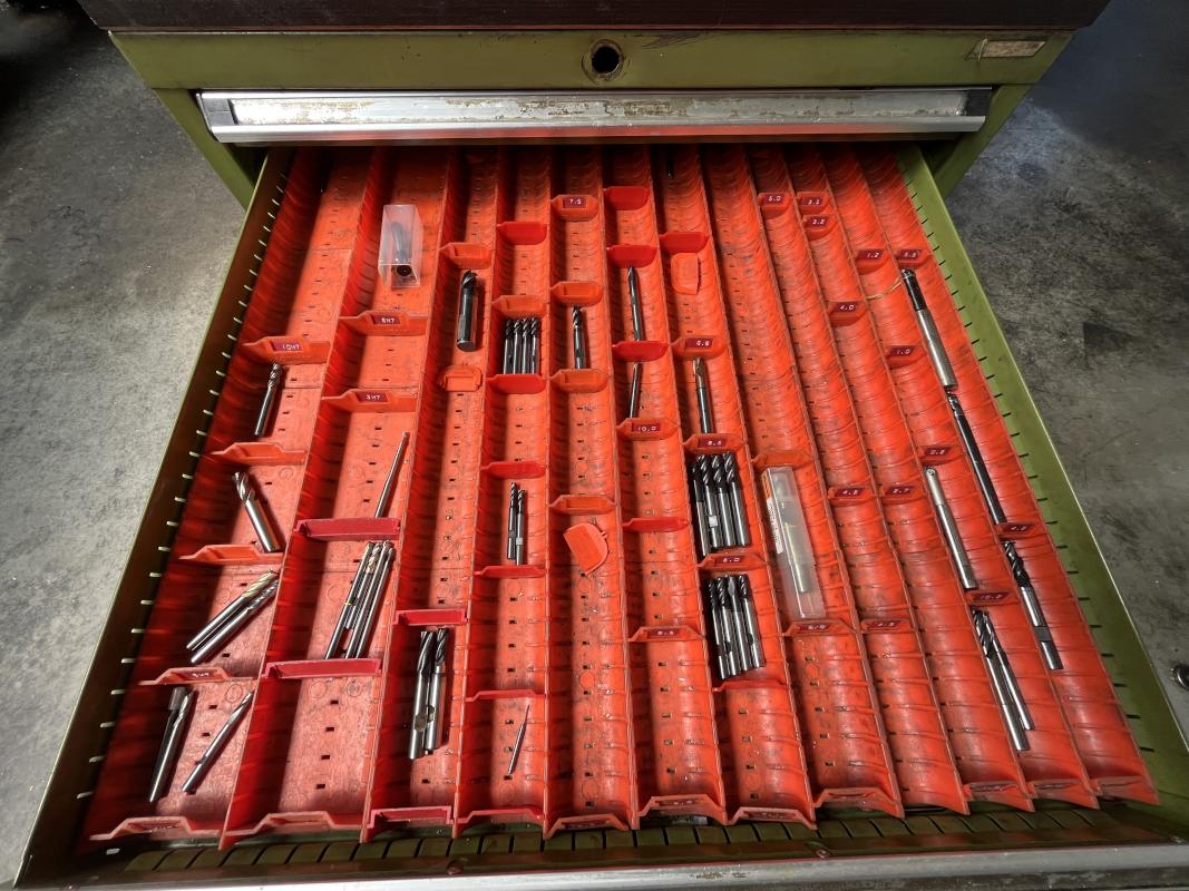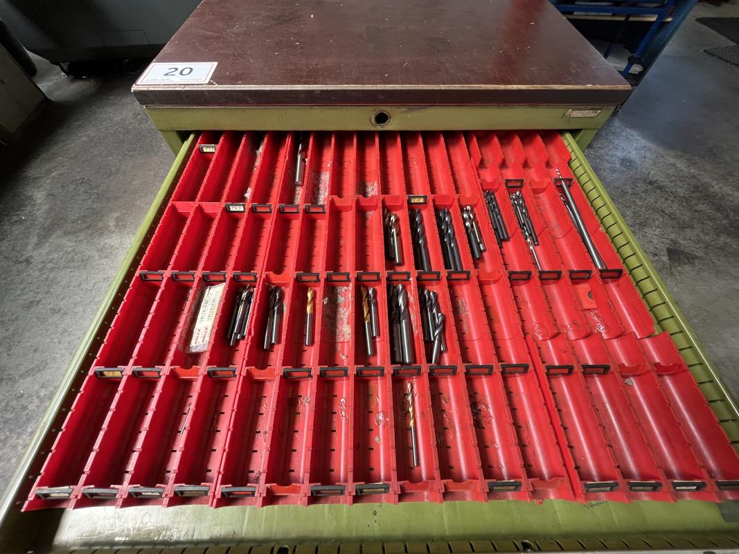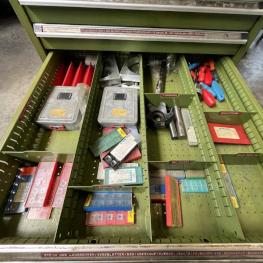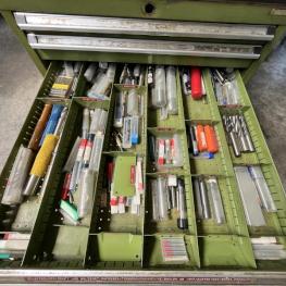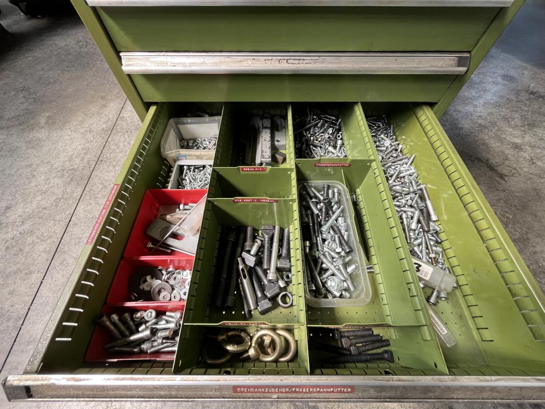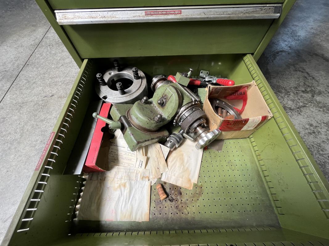 Auszüge, Inhalt: div. Fräsaufnahmen, Walzen, Stirnfräser, Schaftbohrer, Stein- und Langbohrer, Gewindeschneidwerke, Schleifzubehör, Kreisbohrer, Drehbankzubehör, Frässpanfutter, Schablonen, Spannfutter, Bohrer